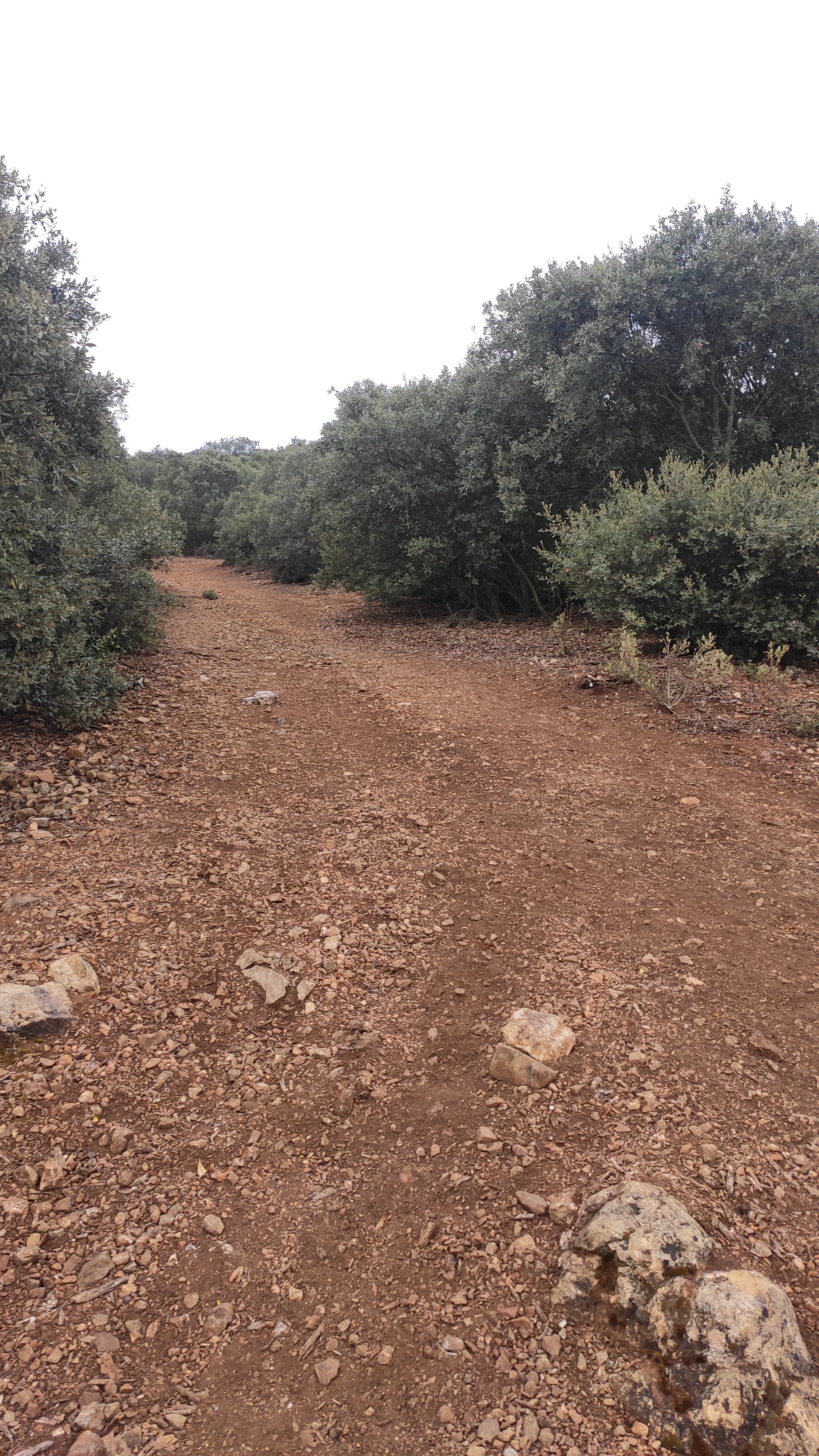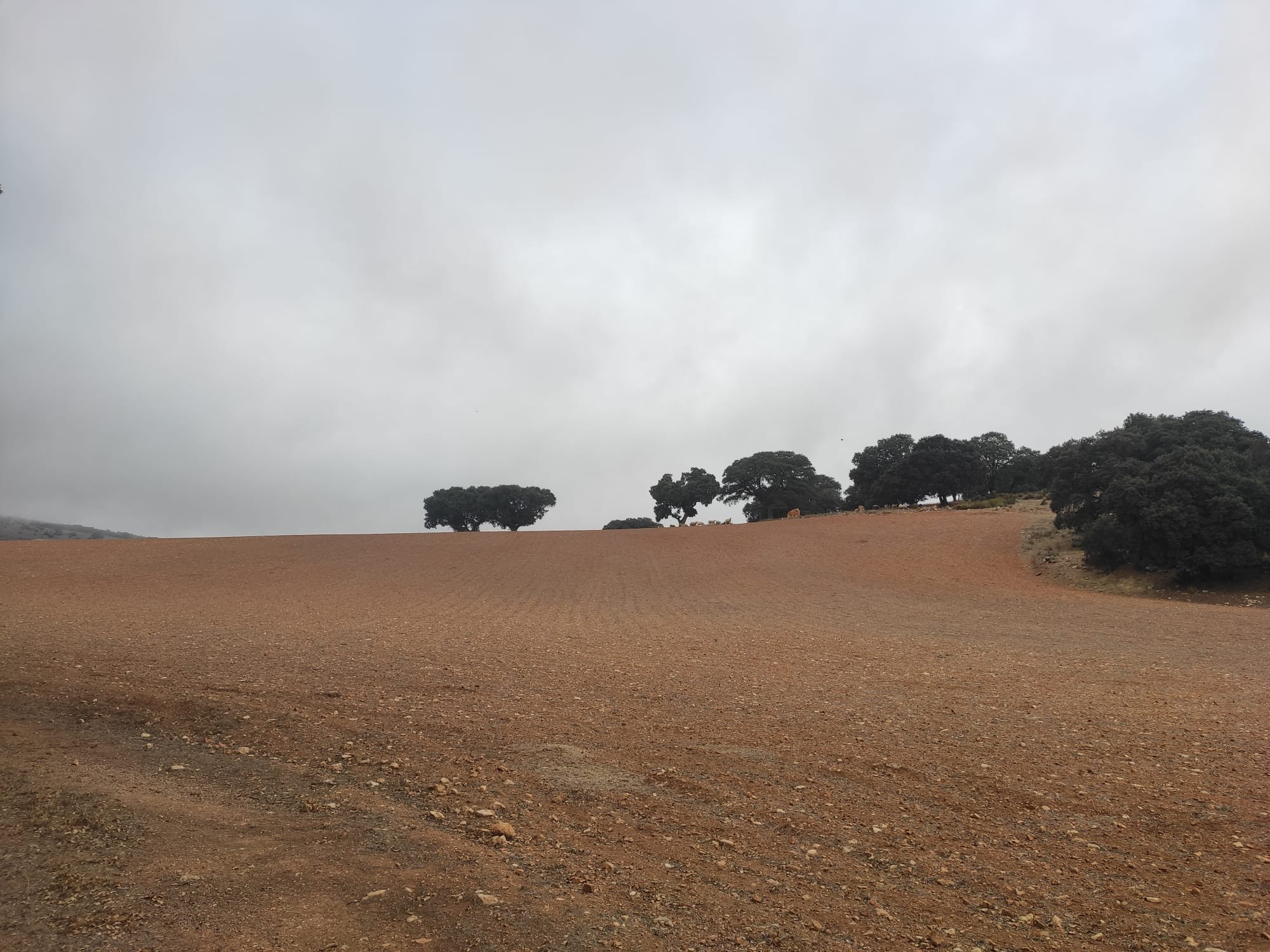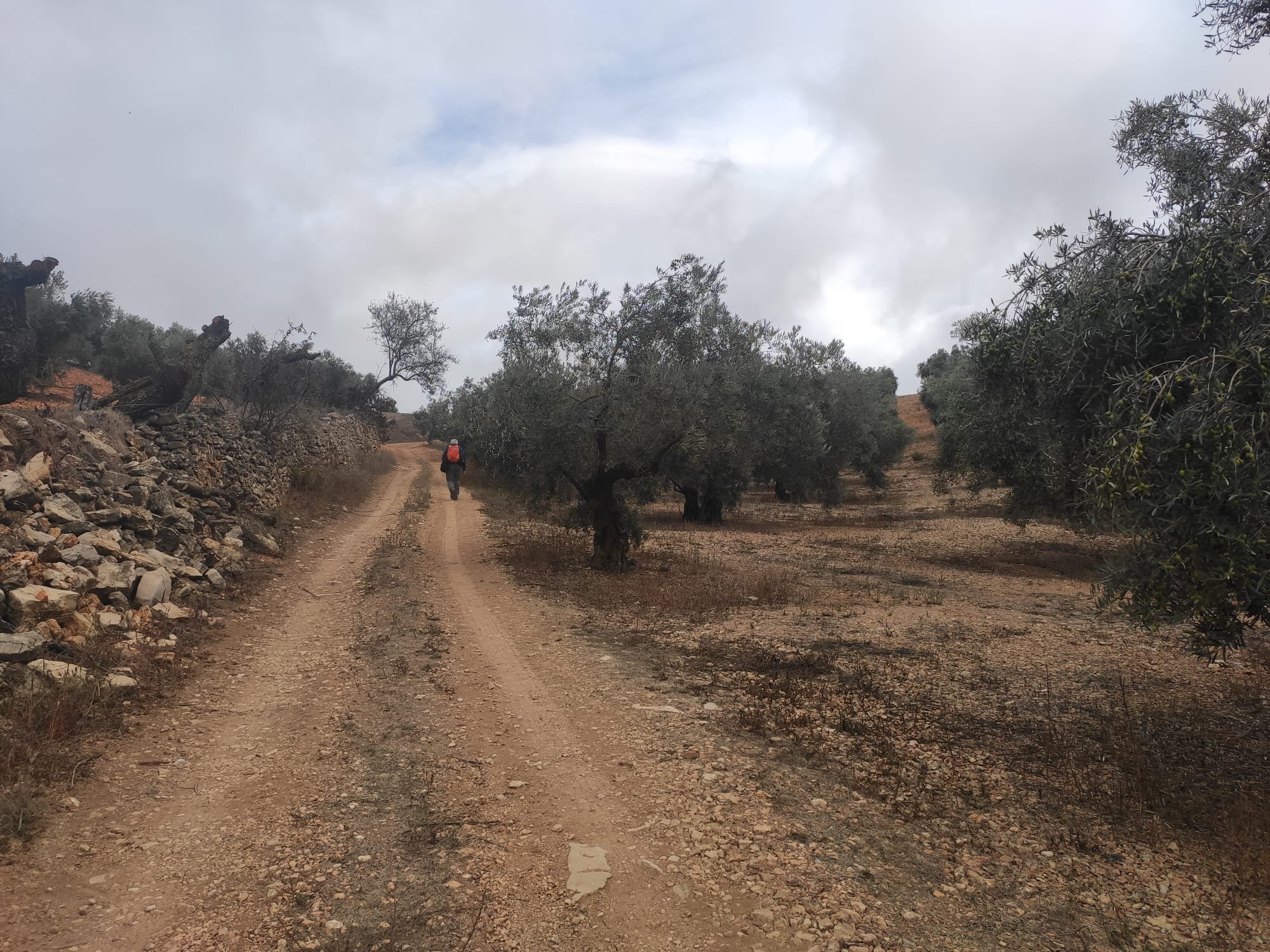 Iniciamos el camino en la parte alta de Alhama, junto al parque de Bomberos y el punto limpio. Se trata de un camino en ascenso que discurre por la antigua vereda de Alhama a Ventas y, muy pronto, nos desviaremos a la izquierda por un camino rural de tierra compactada. Hacia el primer kilómetro encontraremos una planta fotovoltaica. Continuamos por el camino y hacia los 2,5 km pasaremos por la derecha del Cortijo Muñiz (ojo, perros sueltos) Pasado el cortijo, descendemos ligeramente buscando el borde un encinar que dejaremos a nuestra izquierda. Comenzamos a subir de nuevo y a unos 250 m del incio del ascenso encontraremos un boquete del que parte un carril. Lo seguiremos durante un par de km. hasta llegar a la hoya del Quejigo.