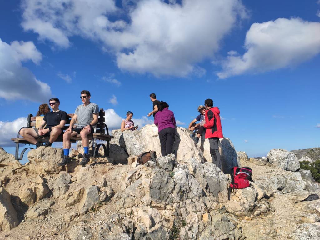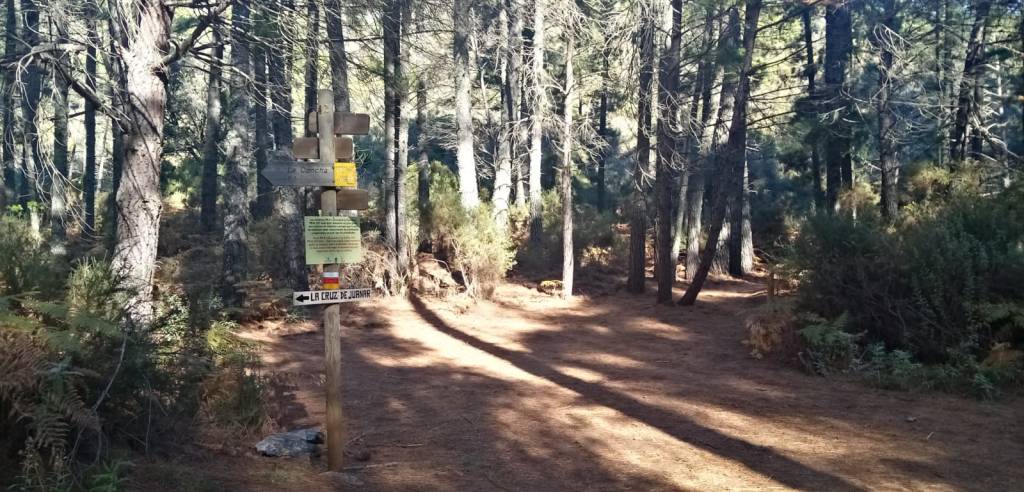 Cresteamos un poco y en seguida vemos el camino hacia el pico La Concha. Tras pasar un nuevo tramo con cadenas (sorprende la cantidad de gente con la que compartimos la subida) tratamos de no perder el sendero ni desorientarnos. Finalmente llegamos al pico en el que han colocado dos bancos solidarios para tomar una foto y ayudar a las personas con piel de mariposa. Tras un avituallamiento y un breve descanso iniciamos el descenso hacia el refugio de Juanar. En esta ocasión bordearemos el Lastonar por el sendero en el que vimos la señal del aspa.