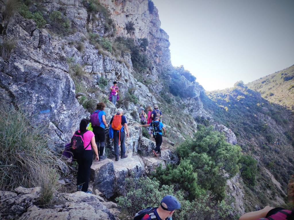 Tras pasar un olivar aparentemente abandonado entramos nuevamente en un denso pinar, en esta ocasión tapizado de helechos, hasta alcanzar una nueva bifurcación que nos lleva a un sendero de arena que comienza a ganar altura progresivamente. Dejamos a un lado la subida a la Cruz de Juanar y continuamos por un sendero de piedras entre matorrales. A medida que ganamos altura la vegetación va desapareciendo hasta que llegamos a un punto en el que encontramos nuevas señales. A la derecha podemos ver el pueblo de Istán y a la izquierda comienza la parte más conocida de esta subida: El paso del Lobo, zona muy peligrosa en la que en varios puntos han colocado unas cadenas. Hay que tener mucha precaución ya que suele haber bastantes montañeros y los cruces pueden reportar cierto peligro.