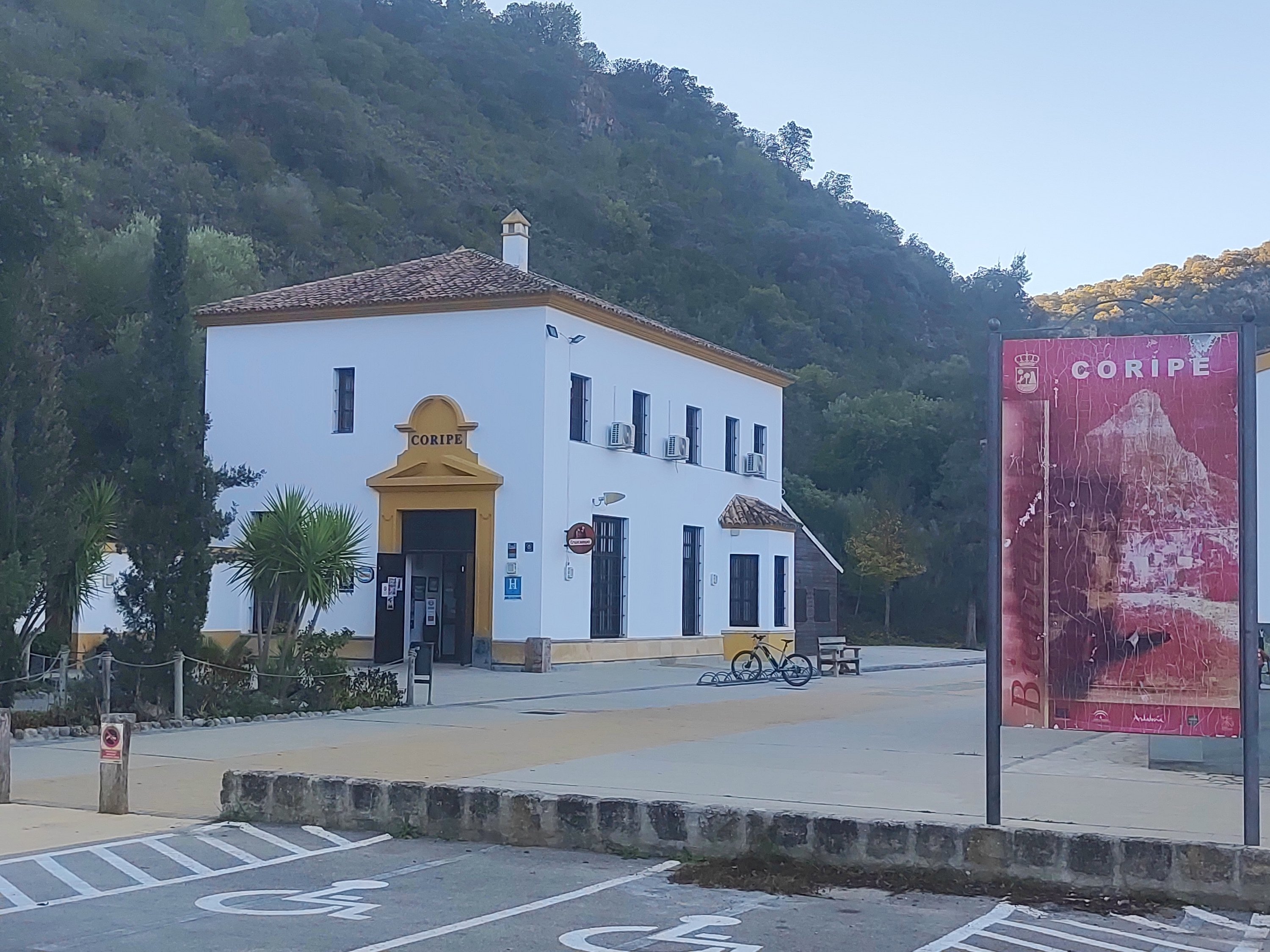 Se inicia este tramo de nuestro proyecto en la Estación de Coripe que cuenta con aparcamiento, restaurante, aseos, mesas de picnic y alquiler de bicicletas. Muy cerca de la estación está el monumento natural Chaparro de la Vega, un ejemplar de encina de más de 200 años de antigüedad y de grandes dimensiones.
