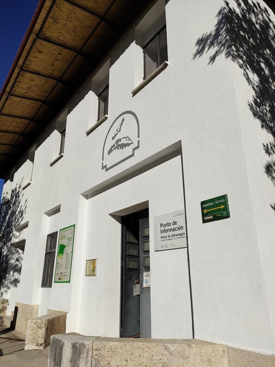 Hacia el km 7,5 encontramos las instalaciones del Centro de Interpretación y Observatorio Ornitológico de Zaframagón, que alberga una interesante exposición sobre la reserva natural del Peñón de Zaframagón, el buitre leonado y su entorno natural. Lamentablemente, en el momento de nuestra visita no funcionaba el Sistema de Monitorización por Vídeo Vigilancia de las buitreras, que permite ver en tiempo real lo que hacen los buitres junto a sus nidos. Junto a este centro de interpretación hay también una cantina con mesas de picnic.