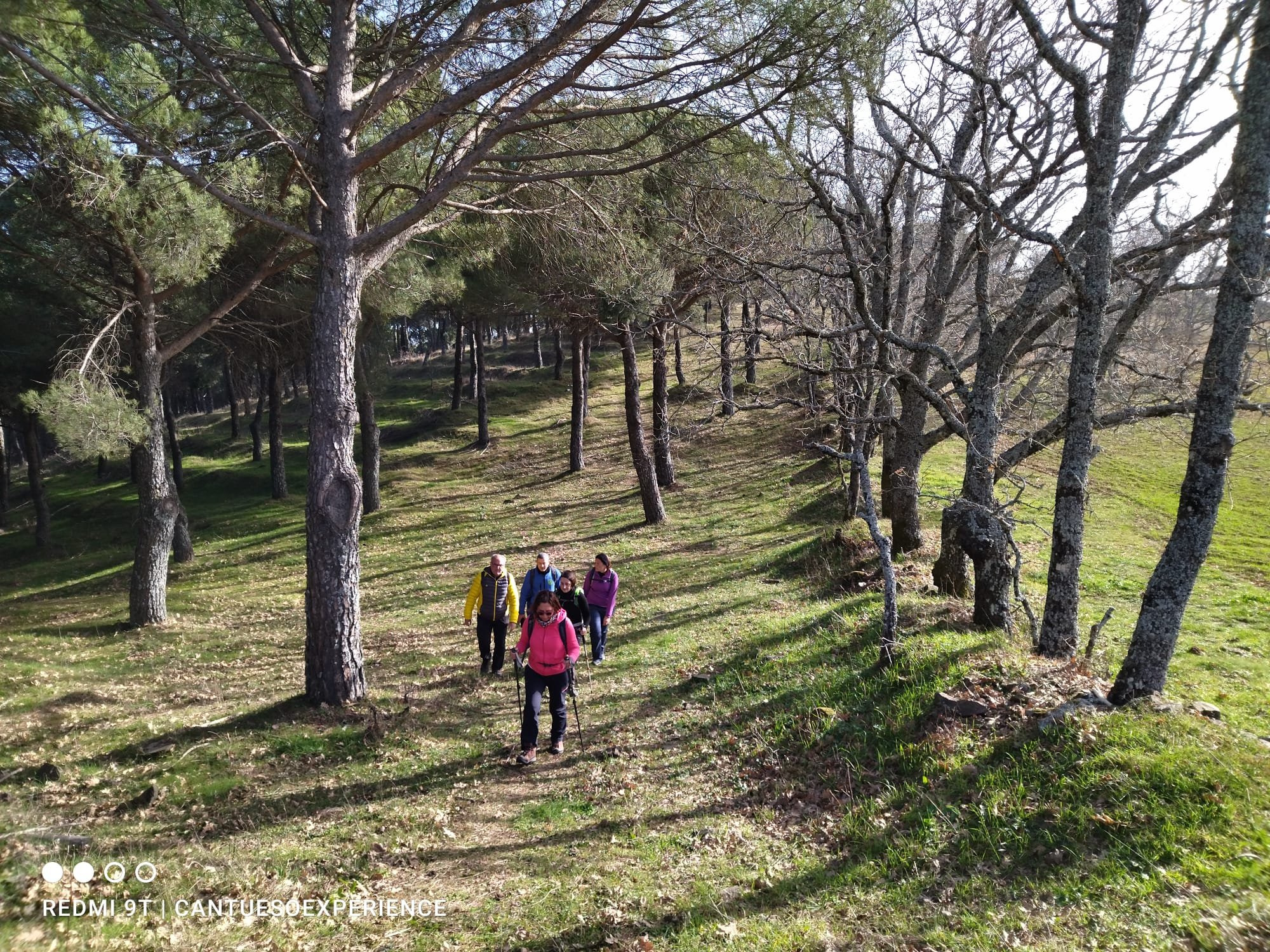 Hacia las 9 y media de la mañana el grupo ya está completo (18 participantes humanos y 4 caninos) y comenzamos a caminar en una mañana fresquita pero muy prometedora para las práctica del montañismo.