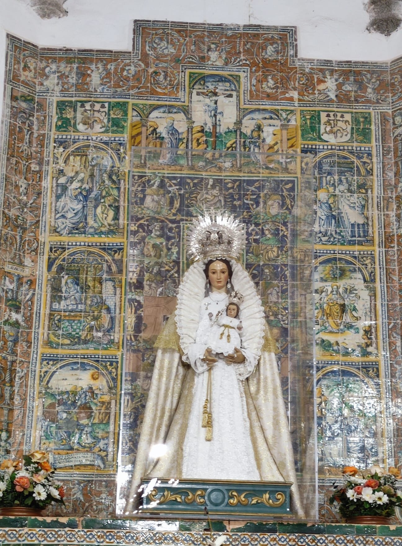 La subida se hace un poco tediosa pero nos anima la cercanía del monasterio, del vértice geodésico ( en el tejado del monasterio) y la parada de las comida. Hacia la 1 y media los más adelantados ya están pidiendo sus cervezas. Del grupo inicial nos quedamos 15 a comer. Víctor, Maripaz y Miguel Ángel se vuelven para Gerena enseguida.