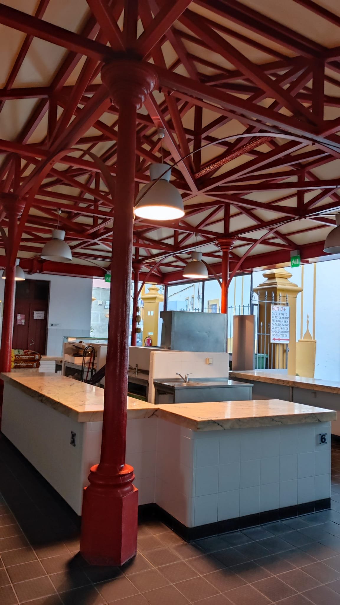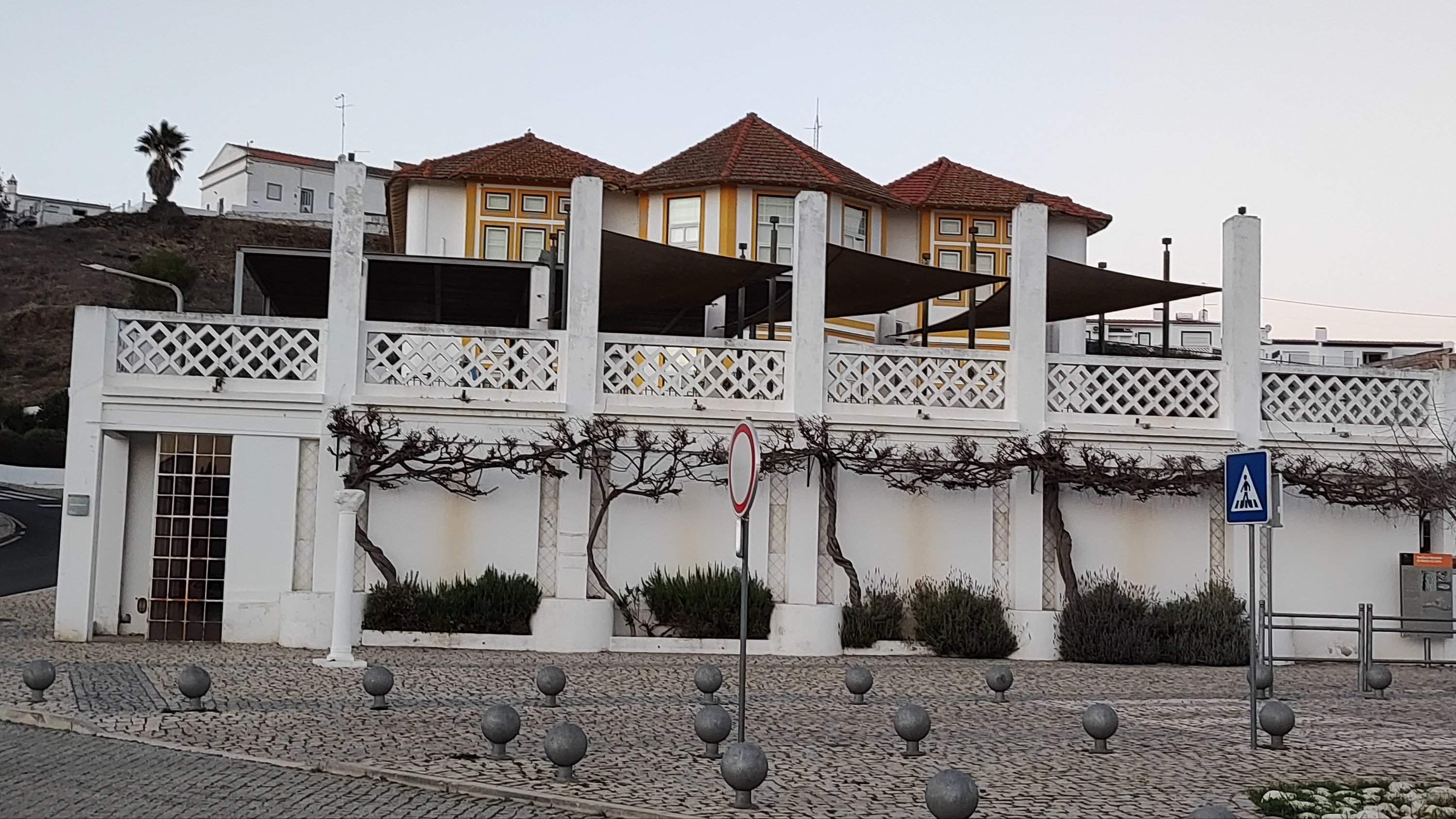 Giramos a la izquierda y comenzamos a bajar hacia la parte media de la villa. A la derecha nos encontramos el mercado municipal, muy coqueto, con los mostradores de los puestos de pescado y verduras y un pequeño café. Subimos por la Rúa 25 de abril y llegamos a un moderno edificio bajo el que se encuentran las ruinas de una basílica paleo cristiana (Rossio do Carmo) y vestigios de una necrópolis ocupada entre los siglos V y VIII sobre la que posteriormente se instaló un cementerio musulmán.