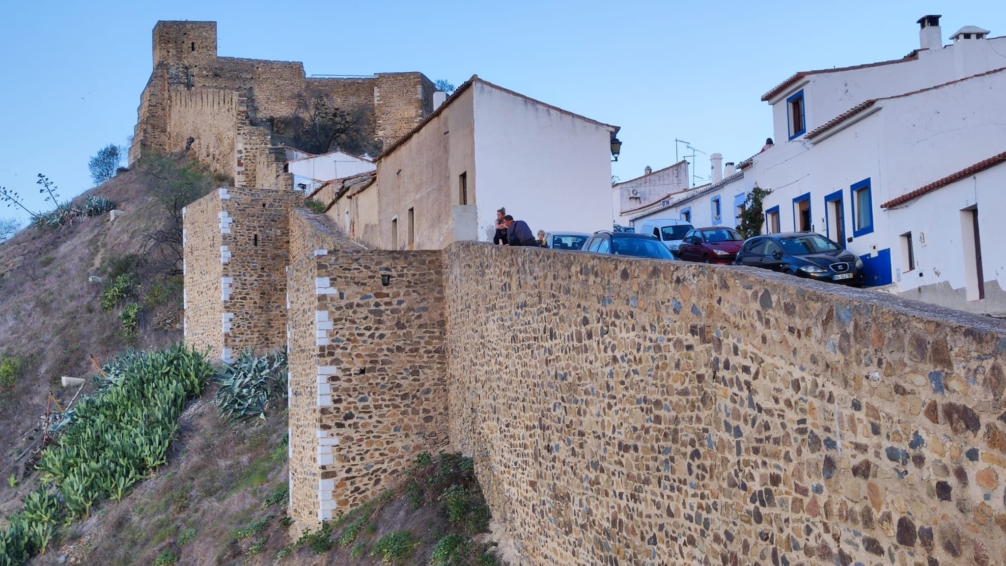 De origen fenicio, la ciudad se asienta en un espolón delimitado por el río Guadiana y su afluente el Oeiras y en su parte más alta cuenta con un núcleo fortificado con una imponente torre del homenaje. A sus pies se extiende el arrabal fortificado que conforma la ciudad vieja. Tiene ciertas similitudes con ciudades españolas como Cuenca, Ronda o Albarracín (de las que yo conozco)