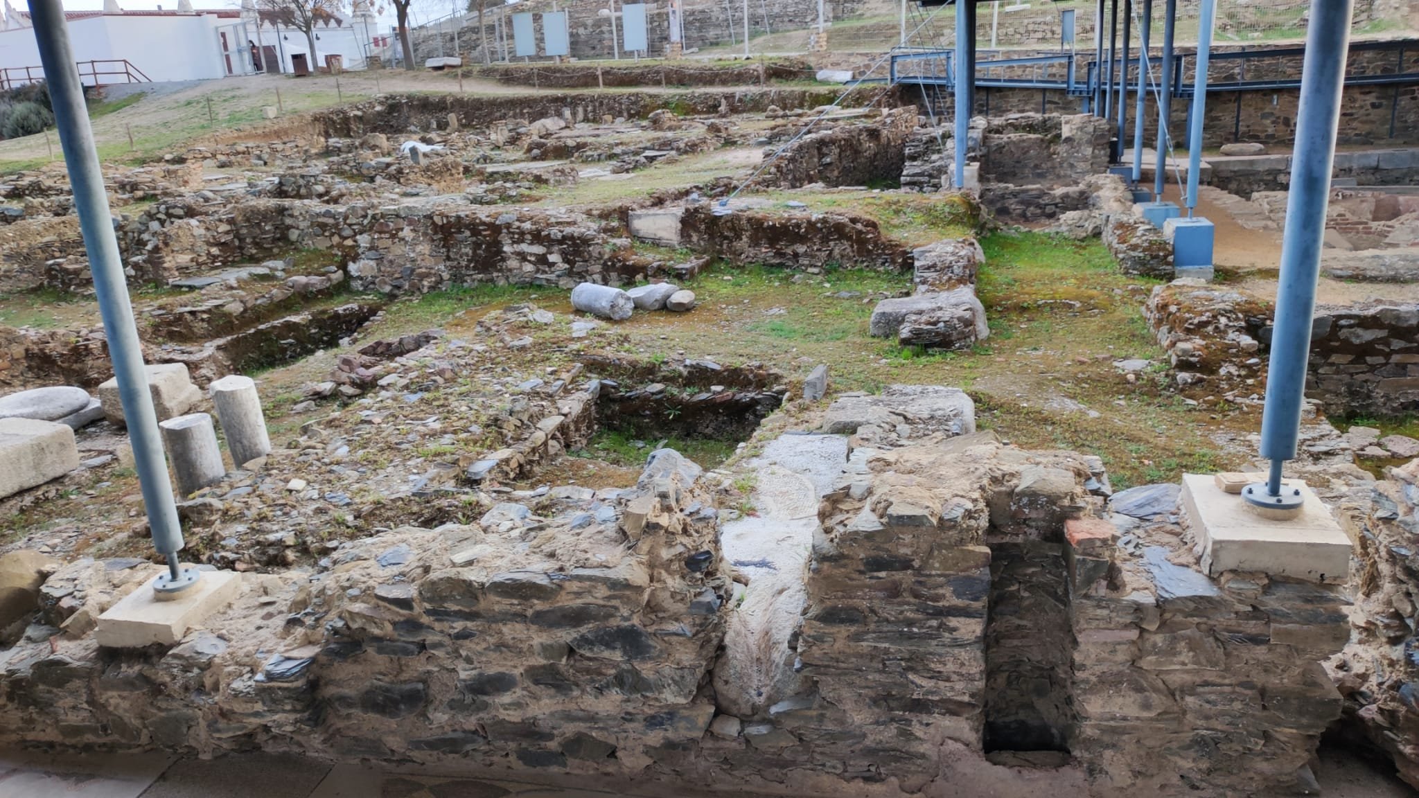 Bajando del castillo nos encontramos con una zona de excavaciones en las que se integran restos de un posible foro romano, los restos de un baptisterio de los siglos V/VI con mosaicos policromados con escenas de caza, y un conjunto de casas islámicas datadas en los siglos XII/XIII. Un poco más adelante se encuentra una reconstrucción idealizada de una de estas casas islámicas.