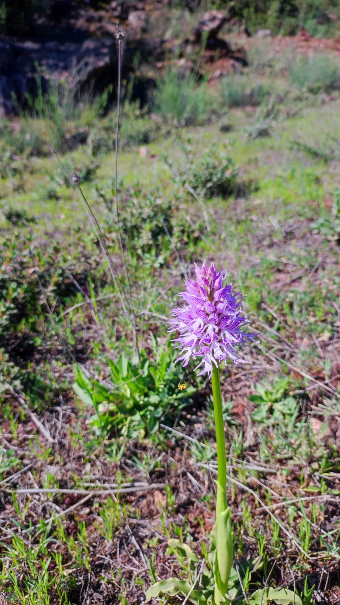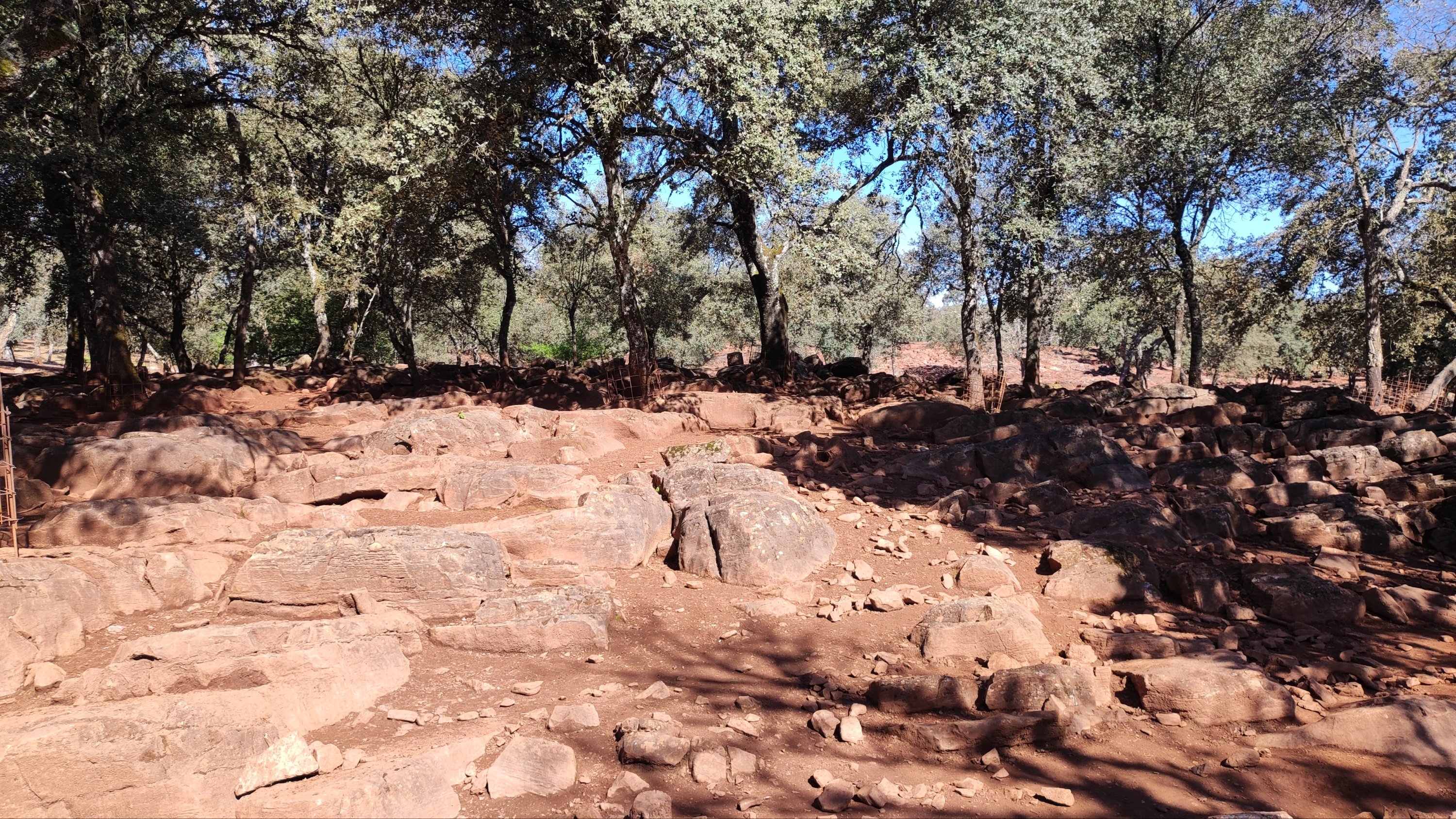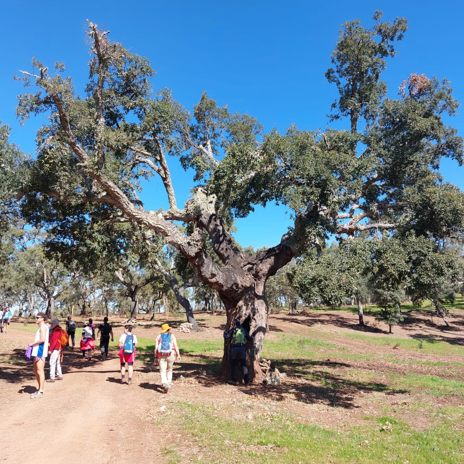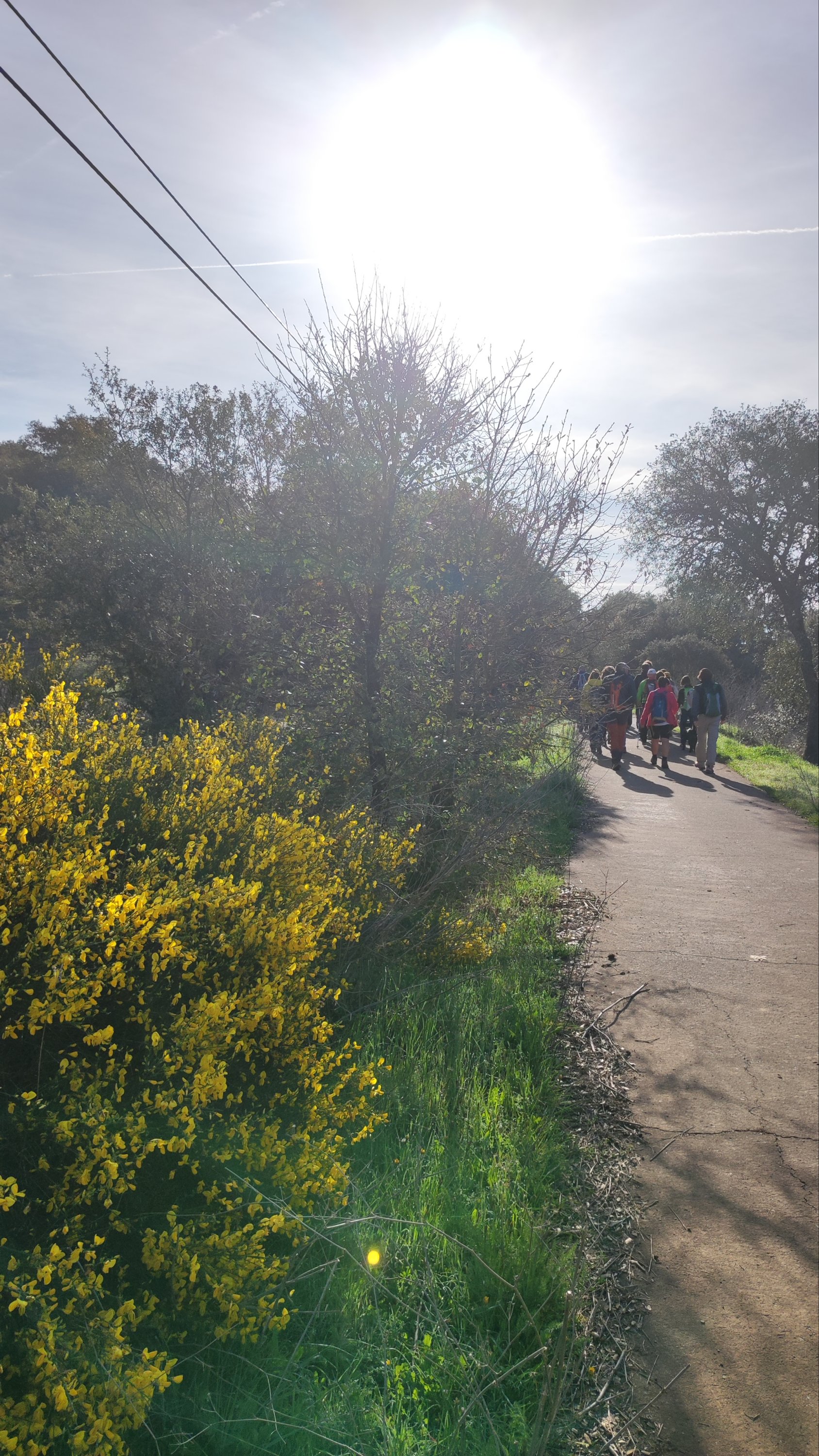 Hace una mañana fresca y soleada y tras el encuentro y los saludos de rigor comenzamos a caminar por la Vía Verde de la Sierra Norte que discurre por el antiguo trazado del ferrocarril minero que llegaba hasta Cazalla. Hacia el km 3,3 de nuestro recorrido abandonamos la Vía Verde por un carril a la izquierda junto al Cortijo del Mojón Blanco, que nos llevará hasta una cancela que atravesamos cuidando de dejarla cerrada. Desde un prado cercano accedemos a la Vereda del Rebollar que nos hará la aproximación hasta el Cerro del Hierro. En el camino atravesamos diversas formaciones vegetales predominando el paisaje adehesado con alcornoques y encinas, algunos robles y quejigos mediterráneos. También encontraremos los arbustos propios de este paisaje como la jara y el cantueso.