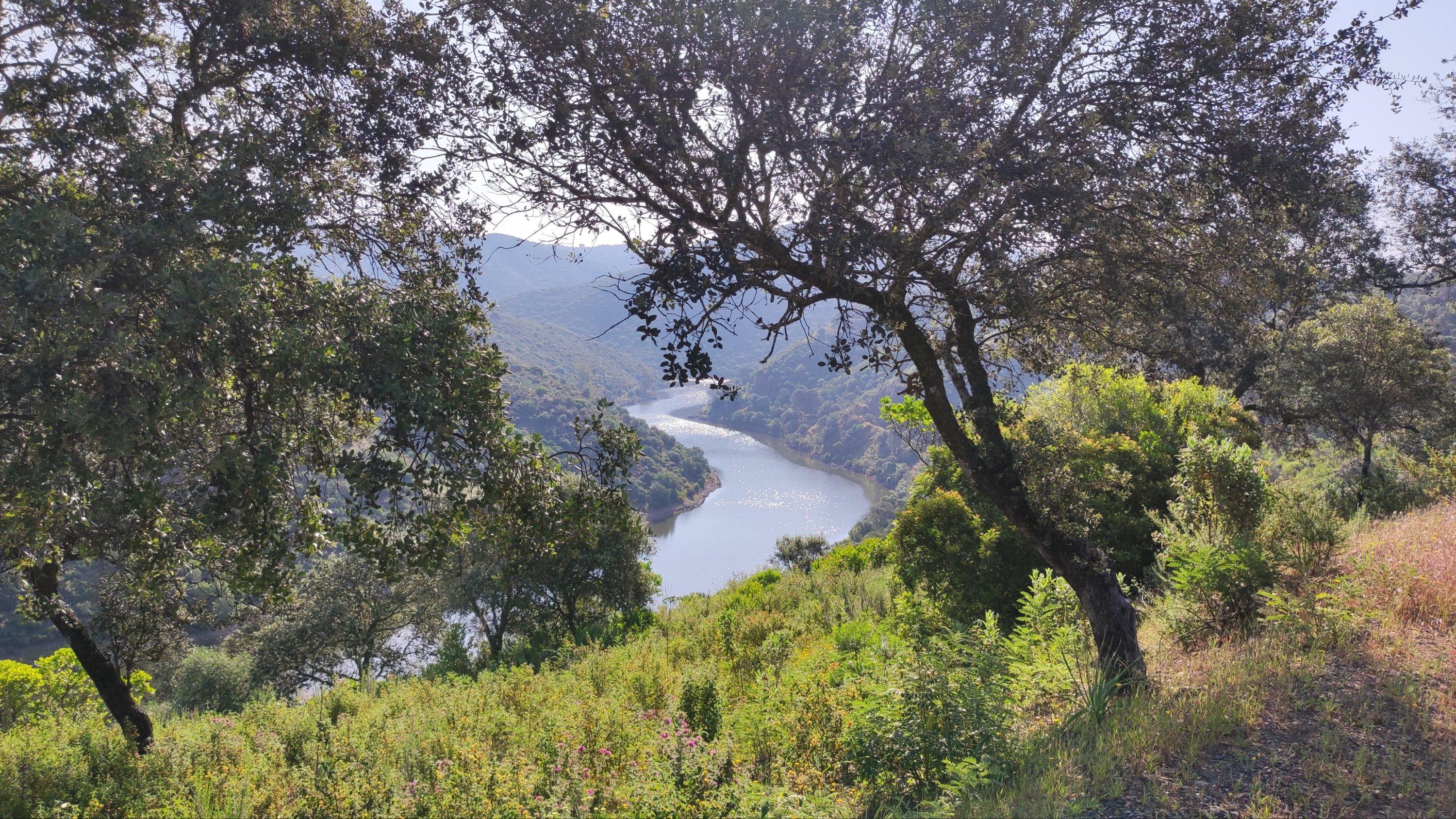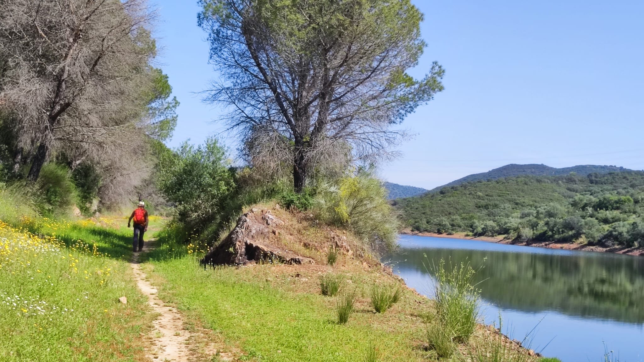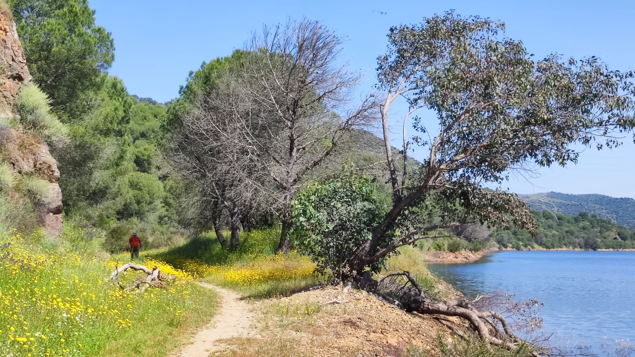 Para nuestra ruta circular vamos a aprovechar parte de ese «Tramo restringido», en concreto el comprendido entre La Cantina y el Mirador de la Estación de la Gergal (unos 7 km) y el regreso lo vamos a hacer por un ramal junto a la lámina de agua del embalse del Gergal y el Contraembalse de Guillena sobre la ribera del Huelva.