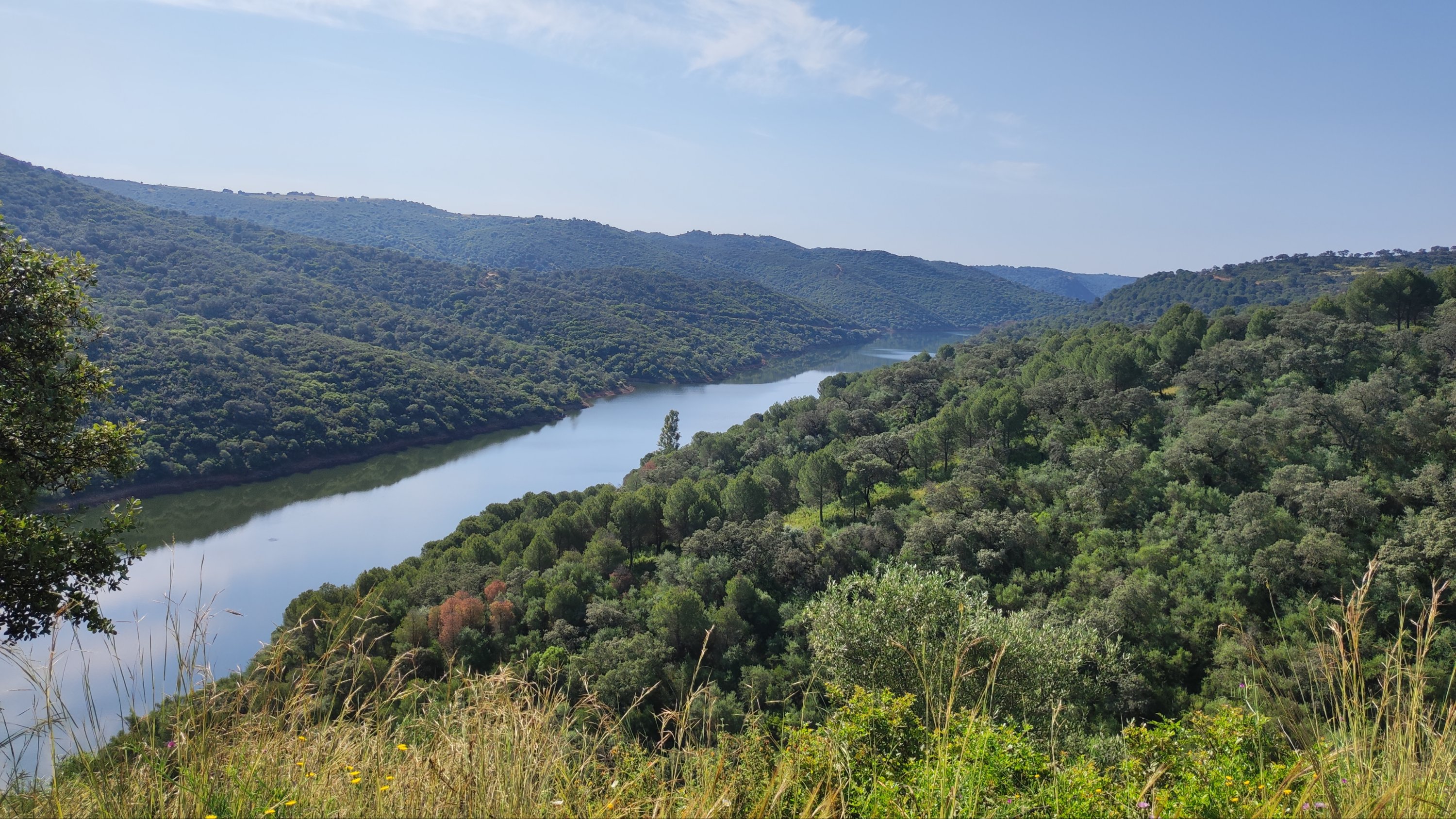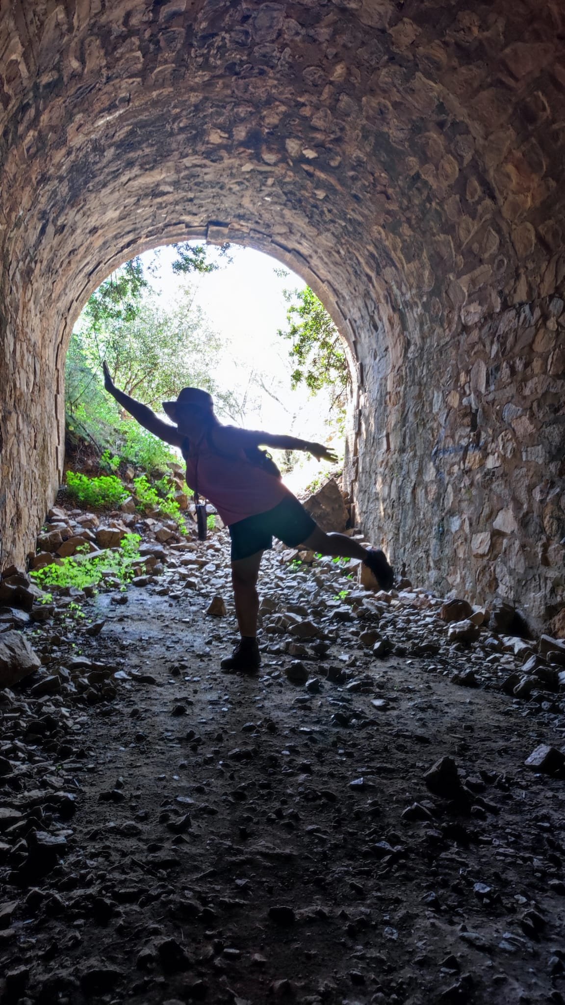 En esta parte del recorrido circularemos por un caminito holgado en ocasiones, una verda amplia en otras, por algunas trincheras con algunos desprendimientos, un túnel con algún desprendimiento en la entrada a la salida del cual ya habremos pasado la confluencia de los rios y estaremos en la ribera del Huelva. Remontando el cauce el camino se estrecha aún más hasta llegar a un promontorio sobre los restos de una edificación que hacen las vedes de mirador. Si continuamos por el carril que encontramos a la derecha se llega a la presa, y si lo tomamos hacia la izquierda llegaremos, tras unos 800 m de recorrido hasta la Cantina, completando nuestra ruta de hoy.