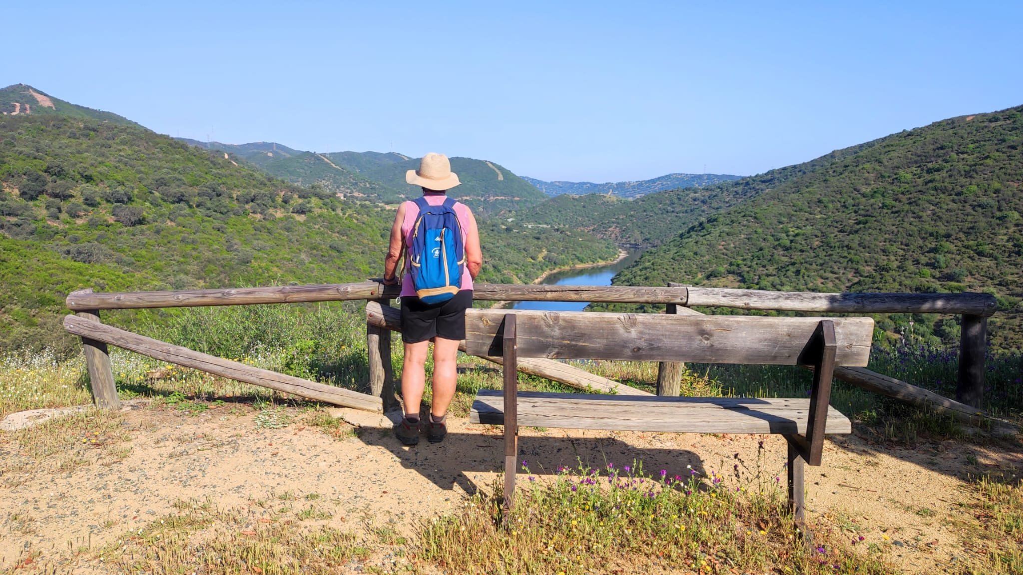 Desde el aparcamiento se accede al «Tramo restringido» por una monumental puerta de madera junto a la que hay algunos bancos, mesas y merenderos que podremos utilizar a la vuelta para hacer un almuerzo campestre. Son los restos de un antiguo trazado ferroviario y ampliamente reivindicado como Vía Verde, por lo que se trata de un tramo con poco desnivel y que ofrece una magníficas vistas sobre el complejo acuático. Pasaremos por el mirador de la confluencia del Huelva con el Cala, por el mirador de la Picota y llegaremos hasta el Mirador de la Estación de la Gergal, lugar en el que se encontraba un antiguo apeadero del tren minero y desde el que tenemos una espléndida vista sobre el Embalse del Gergal.