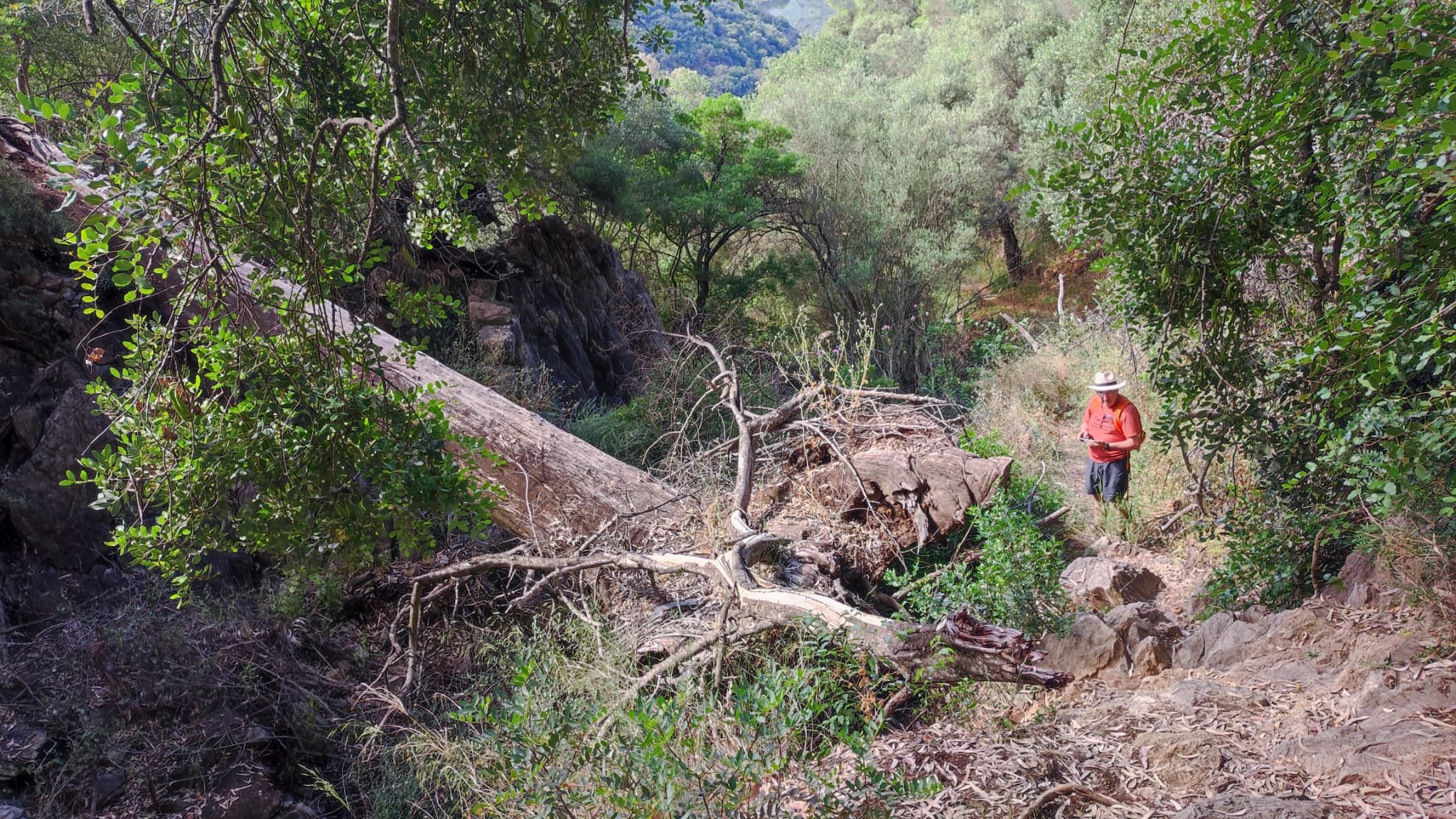 En esta ocasión nos dirigimos a la localidad de Hornachuelos para hacer otro sencillo sendero con nuestro amigo José Antonio. Se trata de una ruta de ida y vuelta que sale directamente desde el centro de Hornachuelos y se adentra en el PN Sierra de Hornachuelos junto al río Bembezar que nos acompañará durante una buena parte del recorrido. La ruta parte desde la carretera que lleva al pueblo de Hornachuelos y transcurre por un camino bien marcado por la ribera derecha del Río Bembezar. Justo enfrente del Bar Alejandro hay unos paneles informativos y las primeras indicaciones para alcanzar el Sendero de los Ángeles. Es un camino de ida y vuelta con muy pocos desniveles y apta para todos los públicos. La subida a la cruz y al seminario está un poco más intrincada pero se salva un desnivel de sólo 100 m, por lo que teniendo en cuenta la distancia (12, 5 km) y el desnivel podemos considerarla una ruta de un nivel moderado bajo.