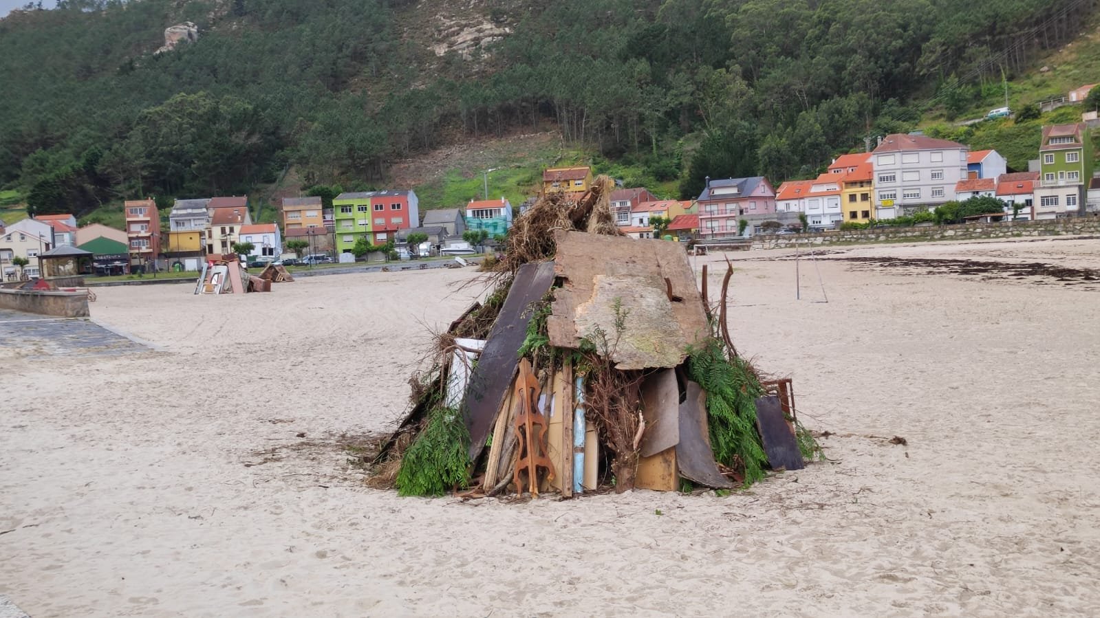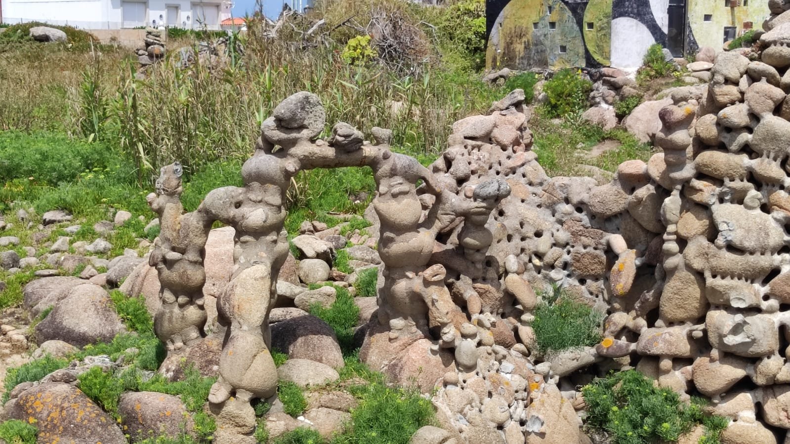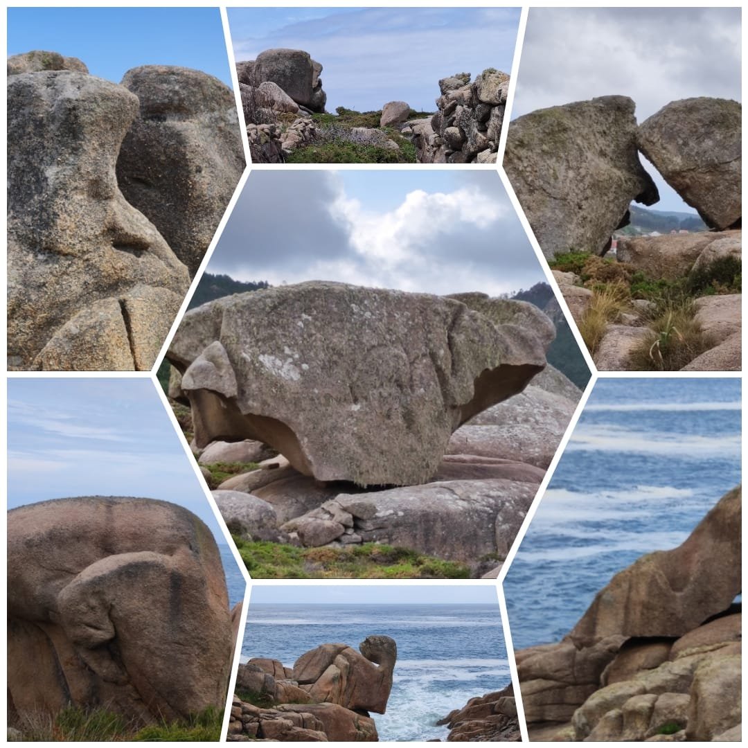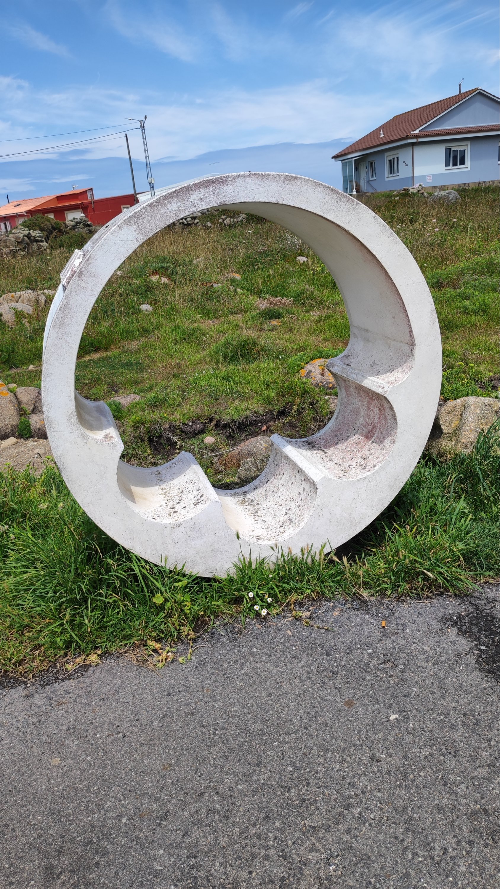 Llegamos a Camelle por su playa que atravesamos para llegar al paseo marítimo. Entre diversos monumentos que recuerdan los múltiples naufragios acontecidos en la zona. Junto al espigón del puerto podemos ver la humilde choza en la que vivió Manfred Gnadinger (Man) un artista alemán enamorado de la zona y que realizó numerosas esculturas con los cantos de la zona. Falleció en 2002 y dejó una obra única que está en un estado de abandono total.