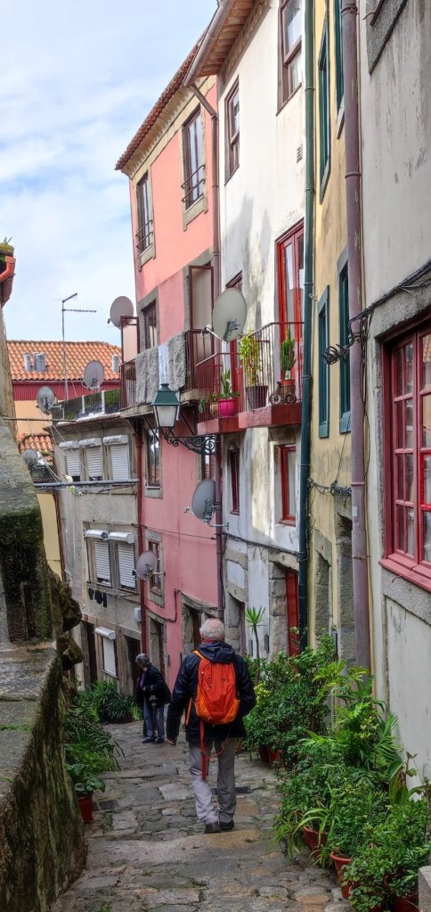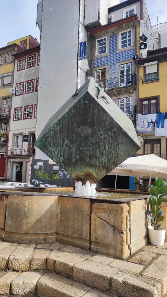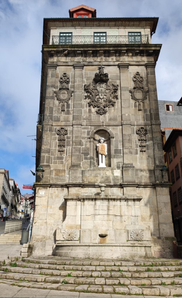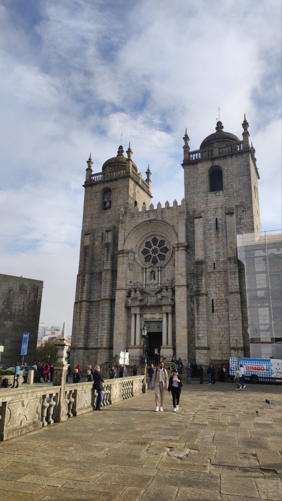 Iniciamos nuestro caminar a la puerta de la Catedral de Oporto, La Sé en pleno casco histórico de la ciudad, su origen se remonta al siglo XII aunque ha sufrido numerosas transformaciones y actualmente es, en gran parte, barroca. La plaza de la Catedral está muy concurrida a las 10 de la mañana y tenemos que sortear grupos de free tours, turistas de todo pelaje y hasta una cantante lírica bastante entonada para la hora. Hacemos algunas fotos en la plaza, en la que destaca un sobreornamentado «pelourinho» que rememora las columnas en las que ajusticiaban a los criminales en otro tiempo. Comenzamos a descender hacia el Duero junto a la estatua de Vimara Peres, mítico caballero que liberó a la ciudad de los musulmanes.