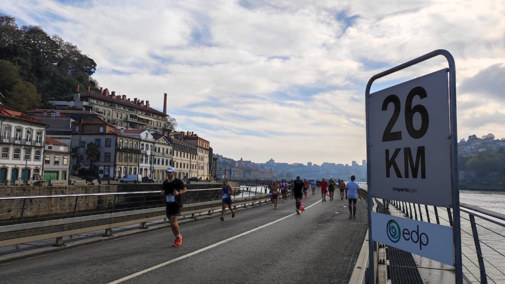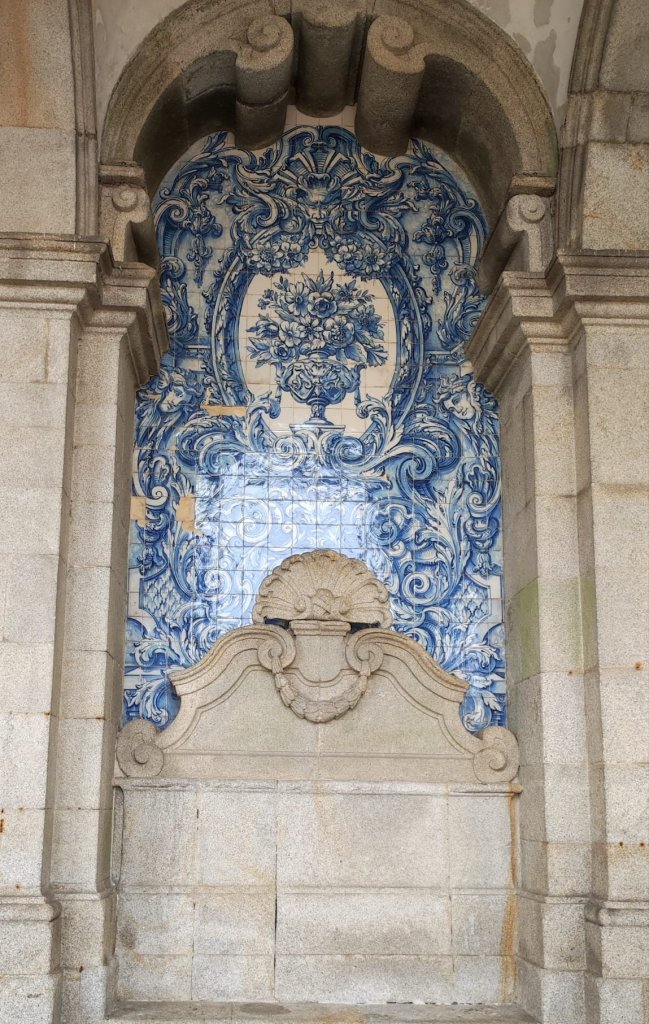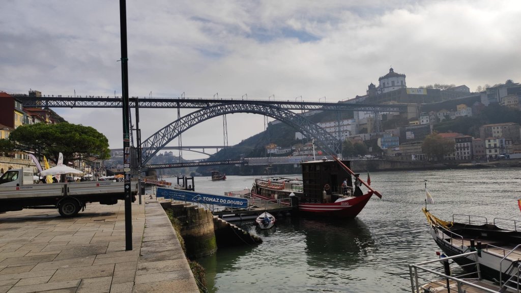 En el descenso pasamos por un mirador desde el que contemplamos la Iglesia de San Lorenzo dos Grilos y tenemos una primera vista sobre el Duero. Continuamos bajando por típicas callejuelas hasta una plaza con una hermosa fuente y tenemos una buena vista del puente de D. Luis I, diseñado por un discípulo de Eiffel a finales del XIX es una imagen emblemática de la ciudad. En la ribera del río nos encontramos que es el día de la maratón de Oporto, por lo que la primera parte del recorrido vamos junto a los maratonianos. Pasamos junto a los restos de las murallas fernandinas, la fuente de Sao Joao y el postigo del Carbao, restos de un pasado glorioso. Al igual que las Iglesias de San FRancisco, Nossa Senhora do O y la antigua aduana que ahora acoge unas exposiciones de Monet y Klimt.