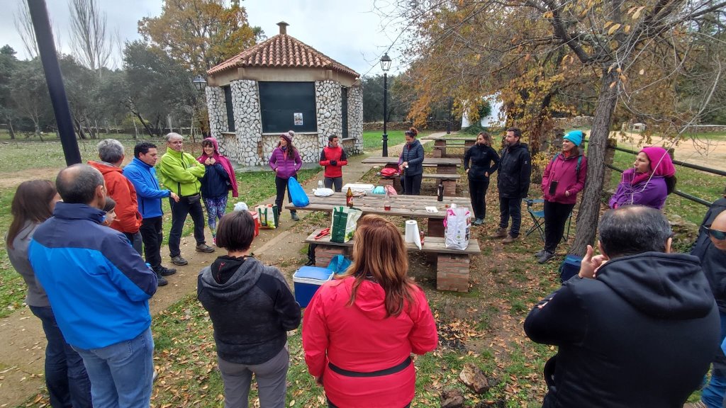 Para cerrar la temporada del Grupo de Montaña Grupo Verde de Gerena se propuso esta ruta sencilla, apta para todos los públicos con la idea de terminar pronto la caminata y poder realizar la comida comunitaria en el mismo área recreativa. Así, a las 10 menos cuarto de la mañana iniciábamos la caminata desde el Talenque en una mañana fresquita por el camino señalizado hacia Fuenteheridos para tomar una bifurcación a 1km de la salida y enlazar con la carretera asfaltada hacia Navahermosa.
