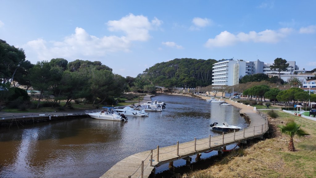 Comenzamos la caminata desde la parada de autobús de Cala Galdana. Desde el aparcamiento sale una pasarela que cruza el Barranc D’Algendar. Vamos bordeando toda la playa de Cala Galdana mientras unos promotores de paseos ecuestres hacen una exhibición en la arena. Al final de la playa una empinada escalinata nos lleva a un par de miradores en los que tenemos una buena visión de conjunto de toda la bahía.
