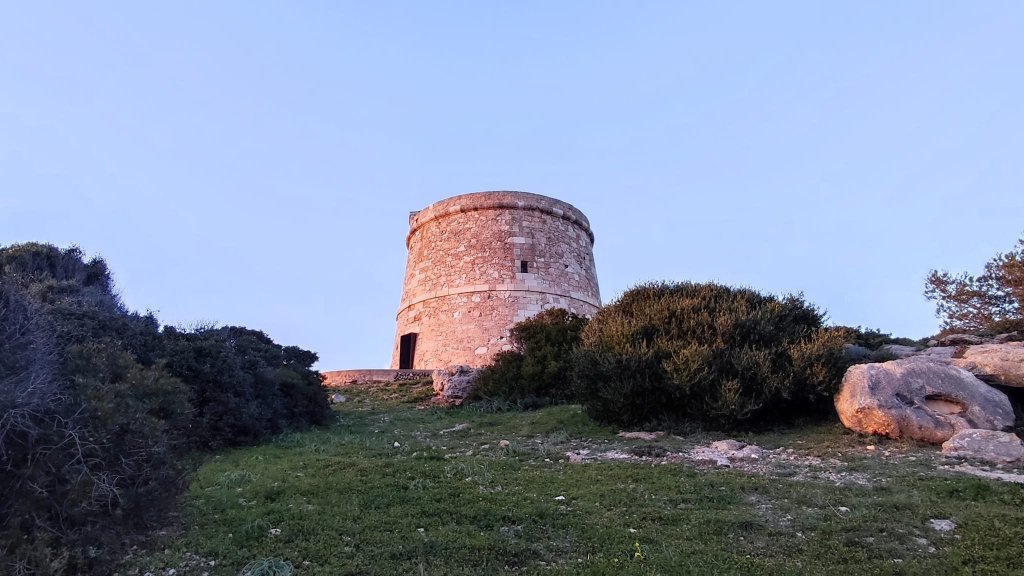 Tras una mañana de turismo tradicional en pos de la Menorca Talayótica nos ponemos las botas por la tarde para hacer otro tramo del Camí de Cavalls, en concreto vamos a ir desde el pueblecito de pescadores de Biniacolla por el sendero señalizado del Camí des Cavalls (GR 223) hasta la Torre vigía de Alcaufar y vamos a regresar casi por el mismos camino pero haciendo un tramo circular para visitar la Torre de Son Ganxo o de Punta Prima, gemela De la Torre d’Alcalfar.