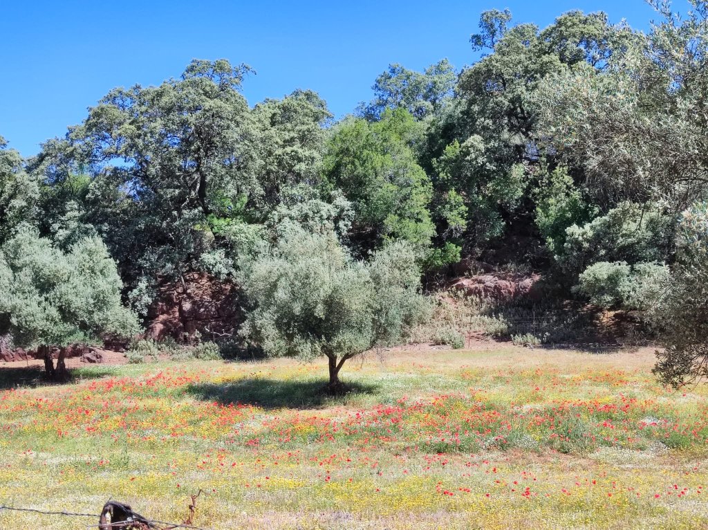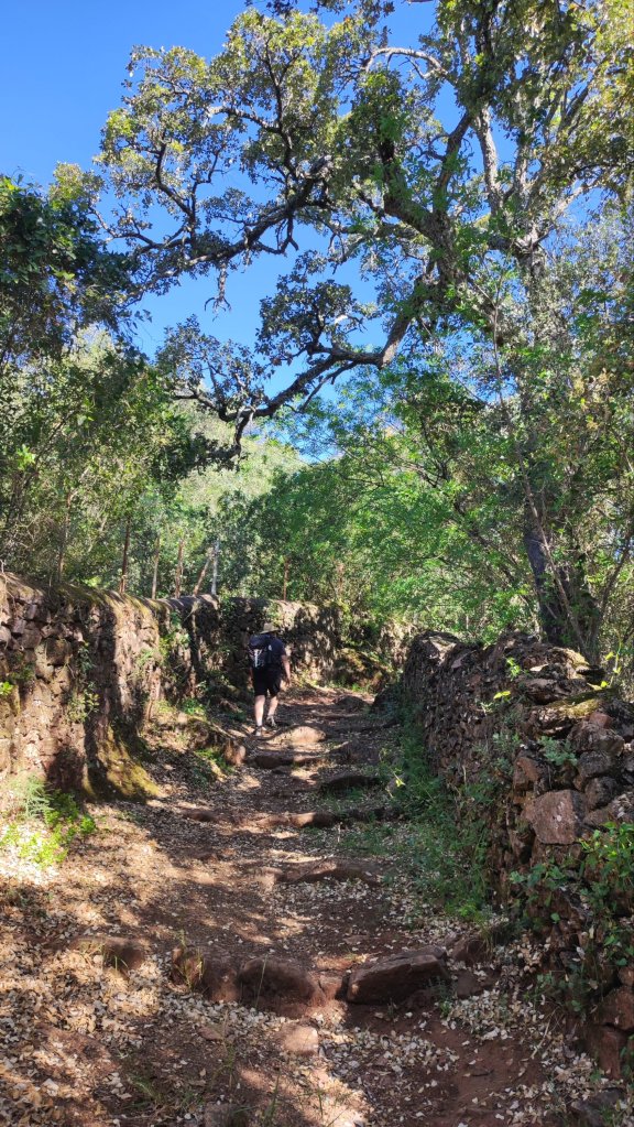 En esta ocasión hemos caminado 14,75 km, con un desnivel de 331 m. de una bonita y agradecida ruta por el PN Sierra de Aracena y Picos de Aroche que se puede hacer en este tiempo por lo sombreado del camino. La decisión de hacer el Camino del Rebollar en las primeras horas de la jornada ha sido todo un acierto ya que, superada la rotonda de entrada a Aracena, todo el camino ha sido muy gustoso y bastante fresco para la estación.