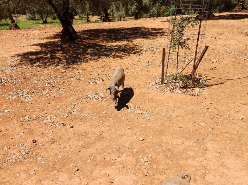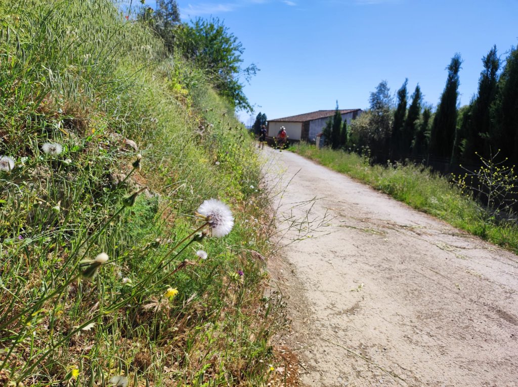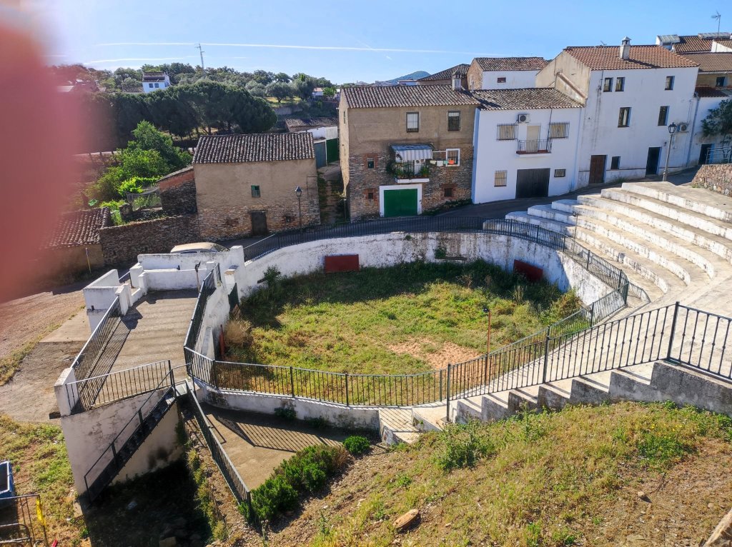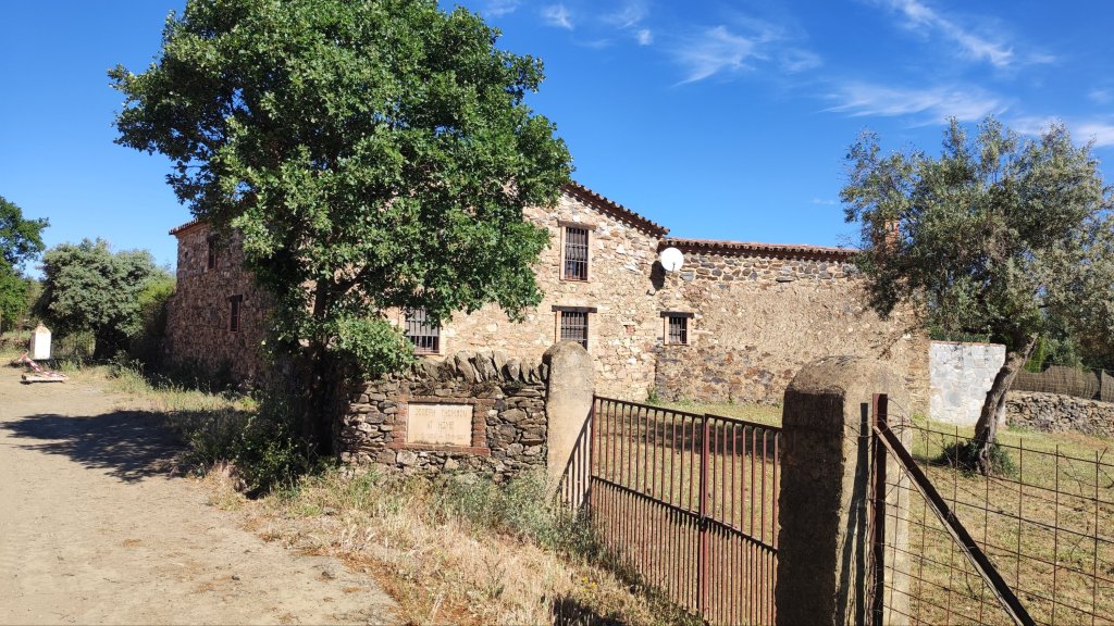 De vuelta a Corteconcepción nos dirigimos hacia la Iglesia de la Concepción y al mirador de los Portales. Junto a ellos una plaza de toros adaptada al terreno que da lugar a un peculiar tendido. Por la calle Montesina nos dirigimos hacia Cuatro Caminos por un callejón entre muros. Seguimos la señalización hacia Aracena por el Camino del Rebollar (Básicamente seguimos de frente) por un callejón denominado La Unbría de la Corte, bajo alcornoques y encinas bastante sombreado. Hacia el km 3,2 de nuestro recorrido salimos a un carril agrícola bastante amplio y con algo de tráfico rodado, es el Camino del Rebollar. Es la parte más neutra de la jornada. Al ser un camino amplio hay pocas sombras y transcurre entre explotaciones ganaderas de ganado porcino, algunas charcas bastante secas y alguna explotación avícola. También pasamos por la casa en la que habitó Joseph Thompson(no tenemos más datos de este señor, es una casa robusta de piedra con una lápida en la entrada que dice Joseph Thompson at home 1988-1997) Este camino desemboca, finalmente, en la rotonda de acceso a Aracena junto a la ermita de San Roque.
