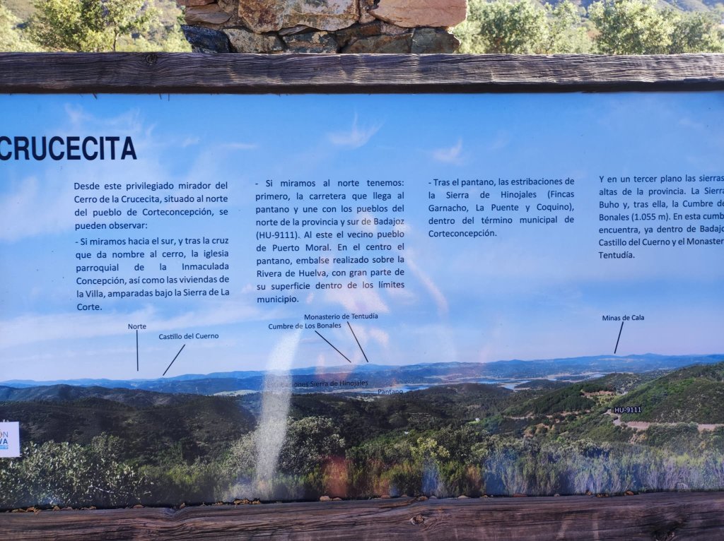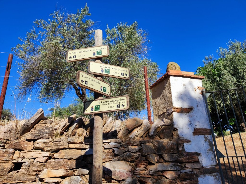 Esta ruta circular es una variante de la «Circular desde Aracena a Corteconcepción por la cascada de Los Molinos y el Camino del Rebollar» que hicimos en septiembre de 2022. La diferencia con aquel recorrido es que en esta ocasión partimos de la localidad onubense de Corteconcepción, hacemos una visita al Mirador de la Crucecita y caminamos en dirección a Aracena por el Camino del Rebollar. El Regreso desde Aracena lo hacemos por el sendero señalizado a la Fuente del Rey y Cascada de los Molinos que transita, parcialmente por un tramo del Camino de Santiago del Sur (Huelva-Zafra)