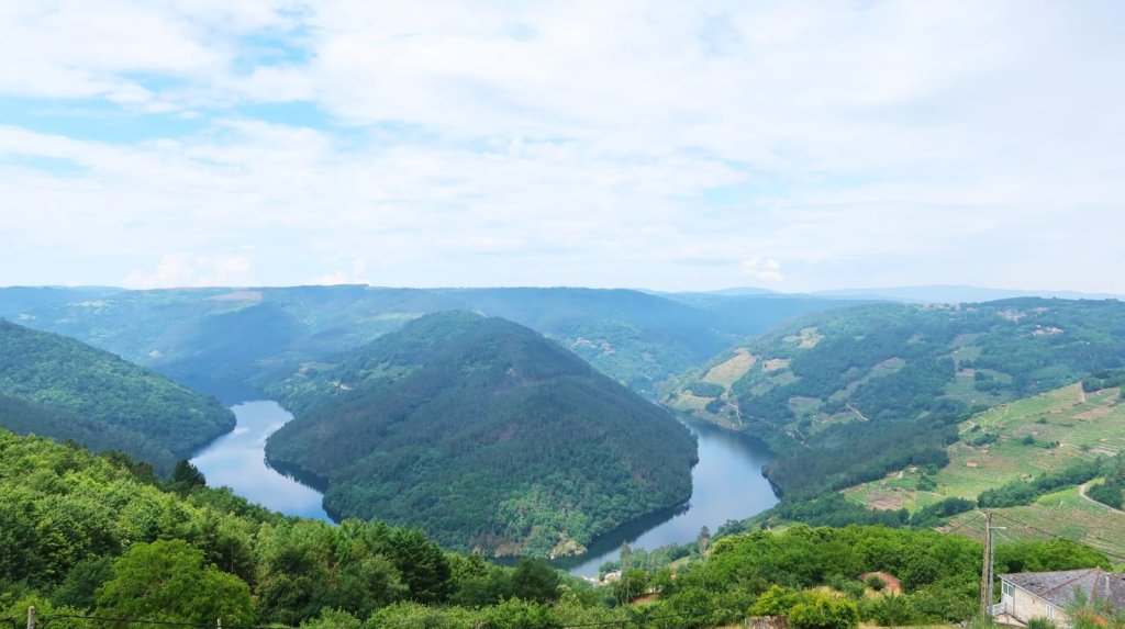 Desde Fontela nos separamos del Camino unos 400 para bajar hacia el mirador del Cabo do Mundo, una de las vistas más hermosas que se pueden contemplar de un amplio meandro en el Rio Miño.