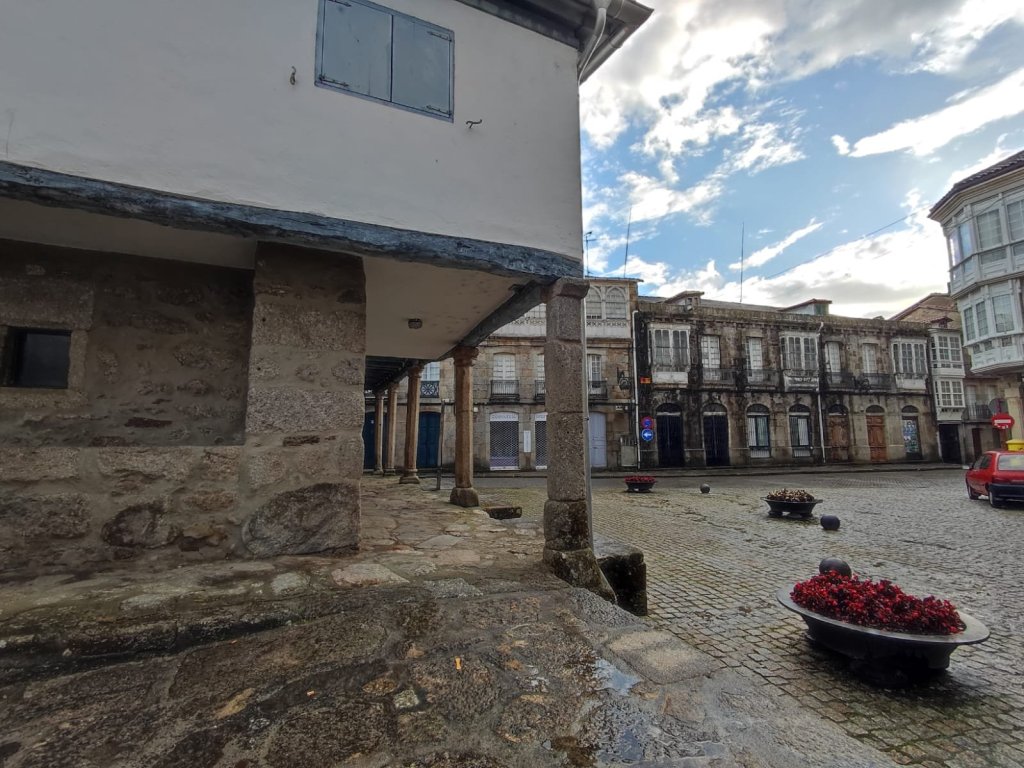 Salimos de Monforte por el puente medieval en dirección hacia el Campo de Santo Antonio dejando a la derecha el convento de las Clarisas, la Casa do Concello y la antigua Rúa Abeledos.