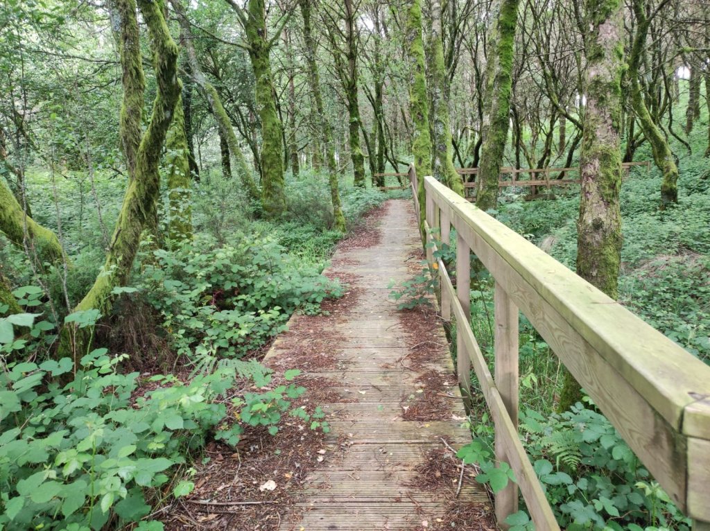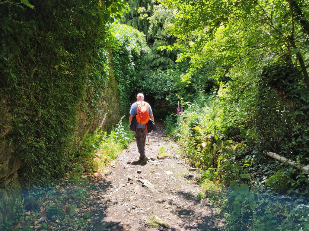 Tras el ligero refrigerio continuamos el descenso hacia Rodeiro en compañía del bosque autóctono más típico de Galicia —carballos, castaños y sauces— que enriquecen nuestro caminar.
