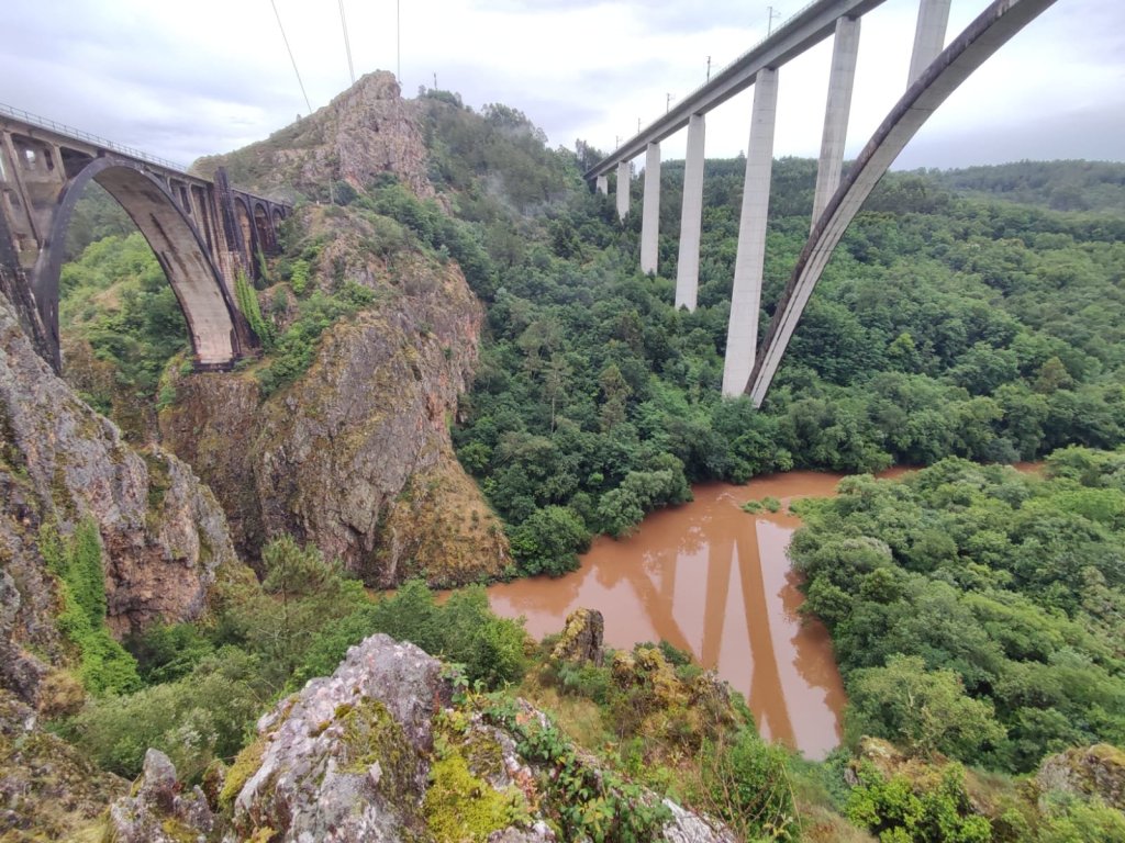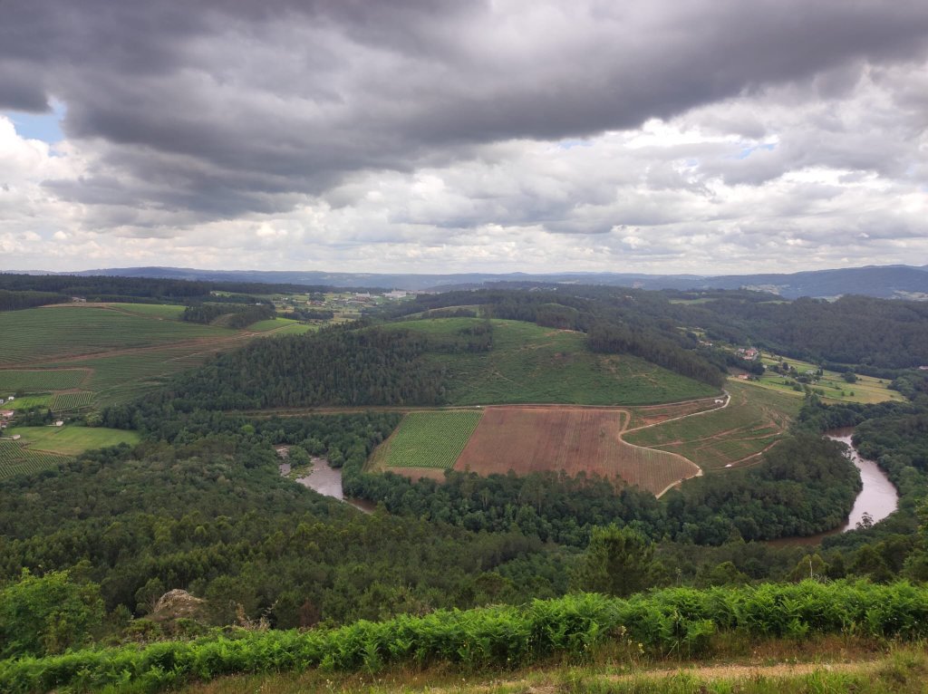 Por la tarde teníamos previsto un paseo hasta un mirador en el que se pueden ver los viaductos de Río Ulla (ferroviario alta velocidad, ferroviario de via convencional y autovía) y hemos aprovechado un rato que paró la lluvia fuerte para ir.