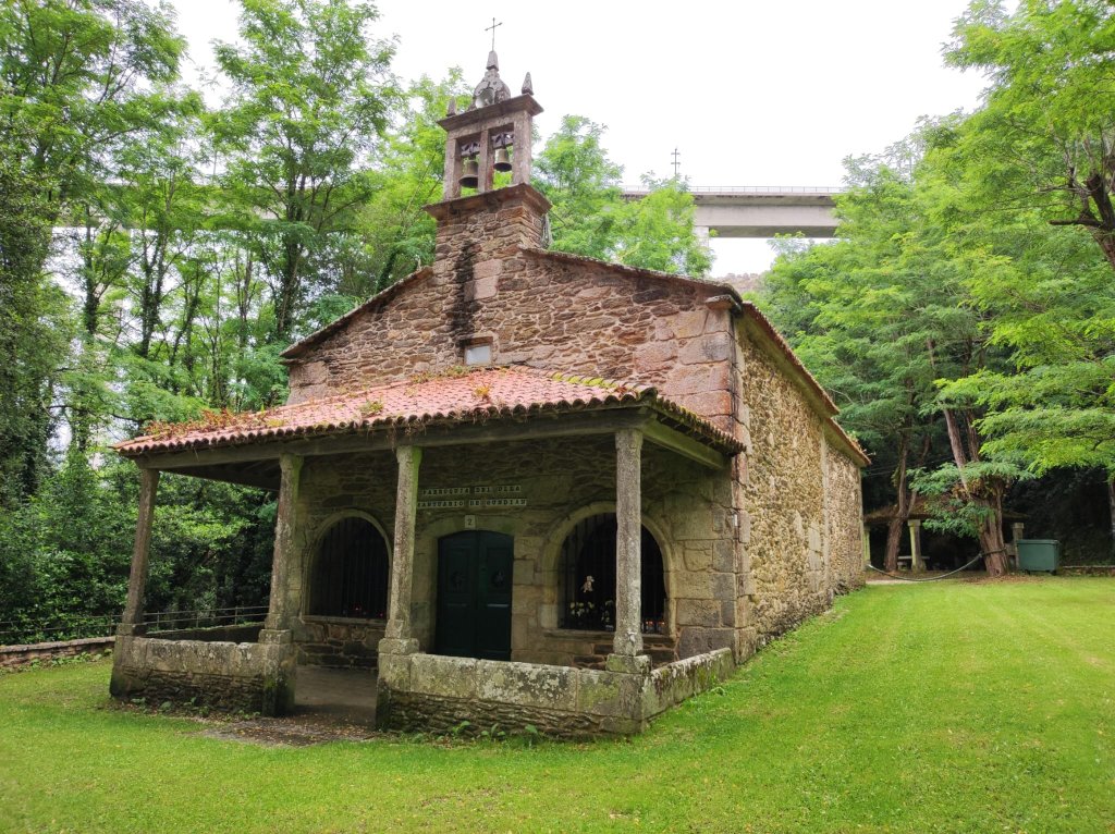 Ya completado el descenso, a la derecha, encontramos un hermoso prado con el Santuario de Gundian, con una bonita ermita dedicada a Nuestra Sra de Gundian, un área recreativa y un escenario para los músicos. Desde este punto nos queda menos de tres kilómetros por una pista asfaltada hasta la localidad de Puente Ulla, conocida con el sobrenombre de “jardín de Compostela”. Cruzamos el Río Ulla, que desemboca en la Ría de Arousa y es la segunda cuenca fluvial de Galicia. Tras cruzar el puente llegamos a la Iglesia dedicada a Santa María Magdalena de estilo románico compostelano, con cruceiro, fuente y lavadero. Nuestro alojamiento está justo al lado, así que terminamos la ruta en este punto.