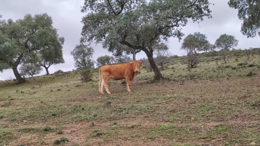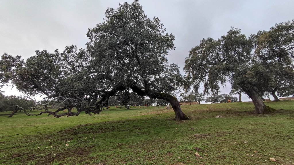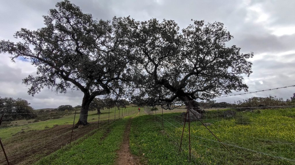 Ante las previsiones meteorológicas del fin de semana optamos por esta ruta sencilla, cercana y apta para realizarla en la mañana. Es un sendero homologado y balizado por la FAM y catalogado como PR-A-396 que discurre principalmente por caminos públicos y algunas fincas privadas que tienen servidumbre de paso. El sendero se encuentra en la localidad sevillana del Castillo de las Guardas, en la Comarca del Corredor de la Plata, camino natural entre Sevilla, Huelva y Badajoz. A lo largo del sendero observaremos el típico paisaje de dehesa, con predominio de la encina, con algún alcornoque y un sotobosque en el que predomina el lentisco, madroños, jaras, romero, tomillo y lavanda o «cantueso». Durante la ruta pasaremos por diversas fincas de ganado ovino, porcino y vacuno por lo que tomaremos la precaución de cerrar las portillas que encontremos a nuestro paso y trataremos de no estresar a los animales.