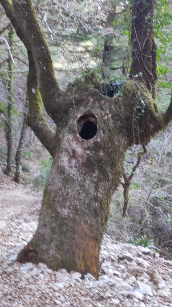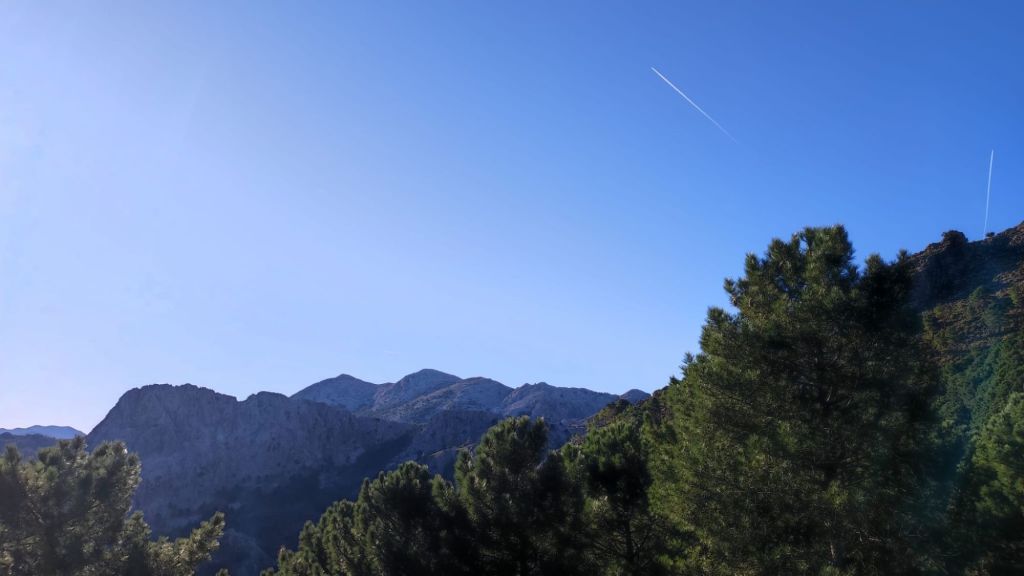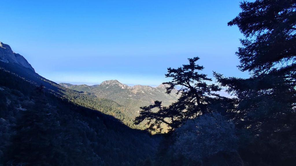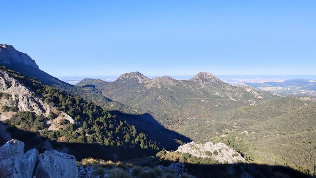 La vereda se hace más amplia y los pinsapos comienzan a clarear dando paso a quejigos y encinas de troncos retorcidos y cubiertos del musgo. Sorprende el llamado Quejigo del Gnomo con su tronco agujereado y bulboso. Finalmente, llegamos a los Llanos del Viento en los que, bajo dos encinas, hay un par de bancos con hermosas vistas sobre las caídas de la Sierra del Pinar en las que se intuye el Torreón, pico más alto de la provincia de Cádiz. Tras un breve refrigerio, emprendemos el camino de vuelta por el mismo sendero que nos ha traído hasta este punto.