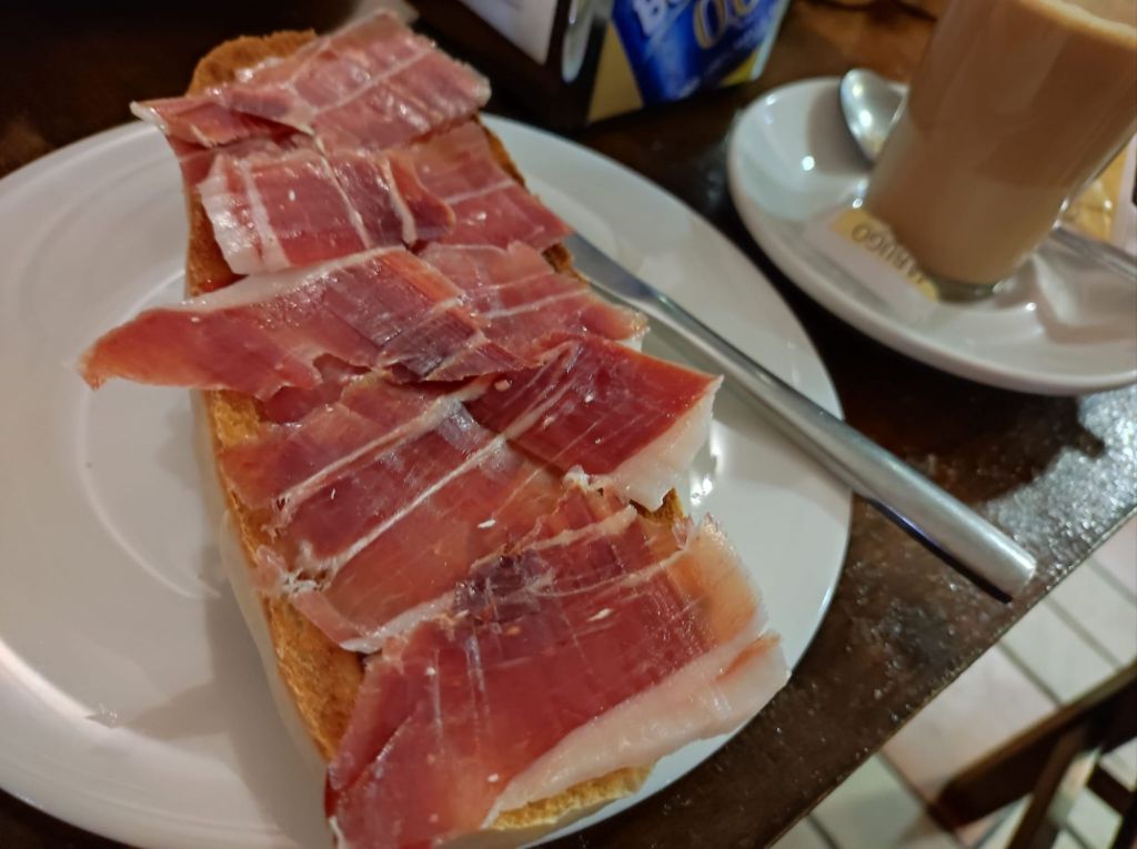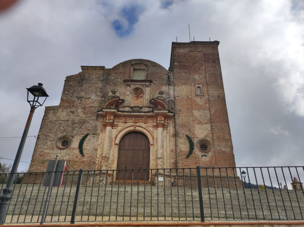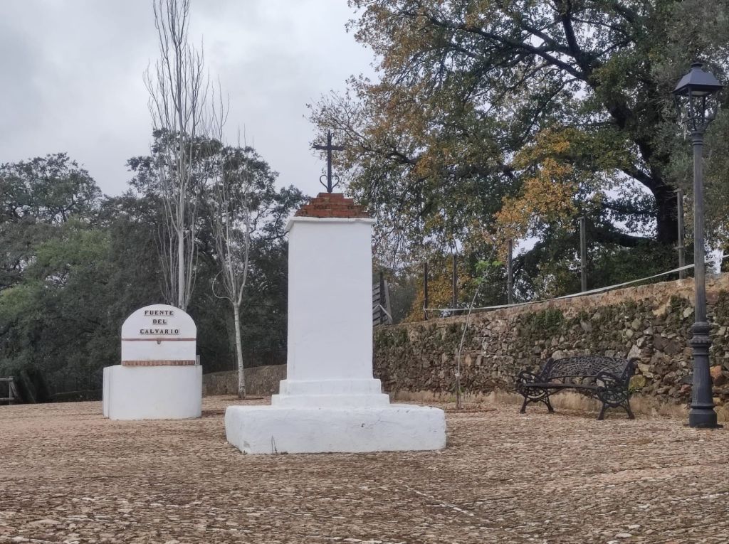 Alcanzamos Jabugo hacia las 11 y media de la mañana y tomamos un desayuno tardío. Cruzamos Jabugo y lo abandonamos por la carretera junto al polideportivo por un carril en dirección a la fuente Del Moral. Tras una suave bajada giramos por el camino hacia Castaño del Robledo, el pueblo más alto de la provincia de Huelva. Tras una fuerte subida por la vereda de Cortegana a Castaño llegamos a Castaño por la zona de la fuente del Calvario. Pasamos por la Iglesia Nueva (inacabada) por la iglesia De Santiago, por la Plaza del ayuntamiento y seguimos subiendo hasta dejar el pueblo por el camino de Castaño a Fuenteheridos en fuerte subida.