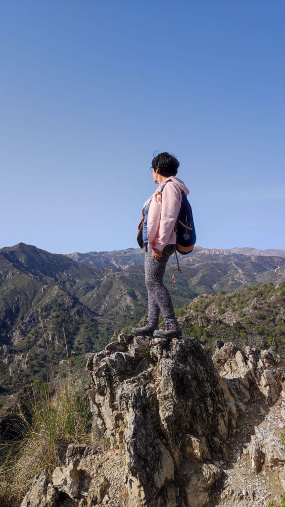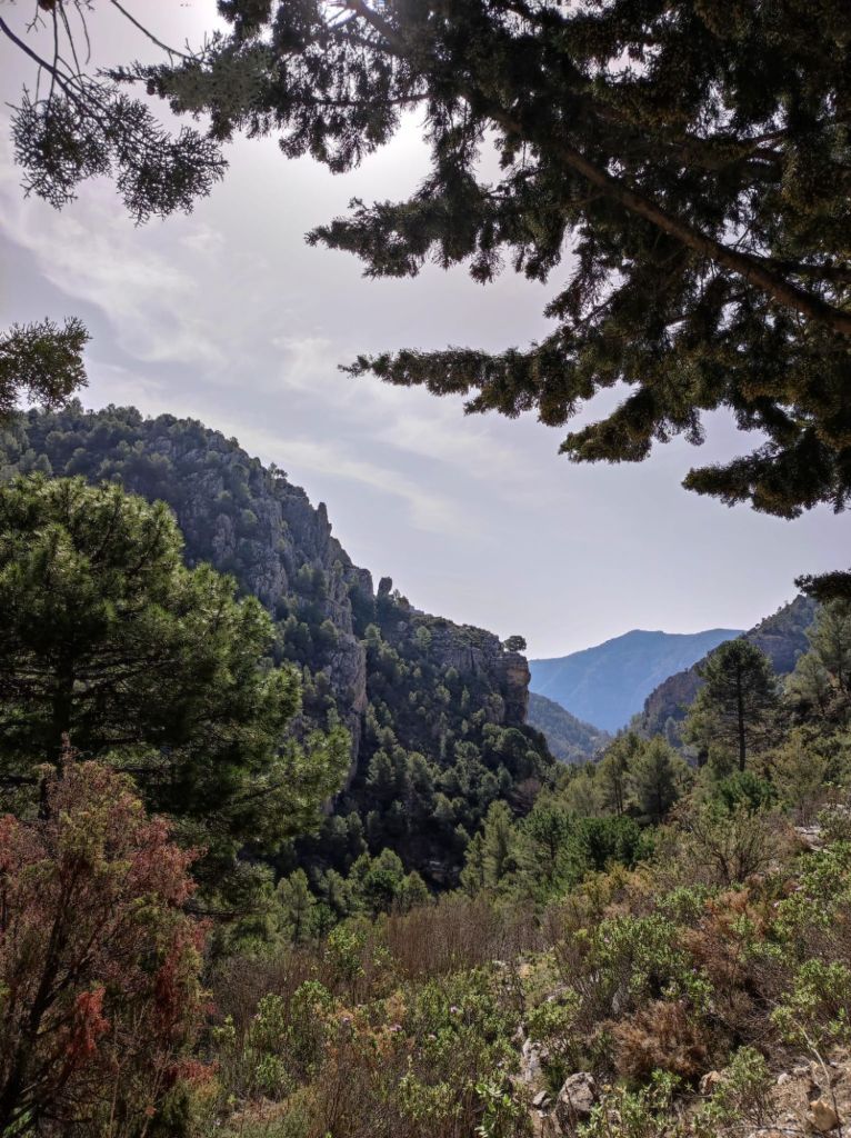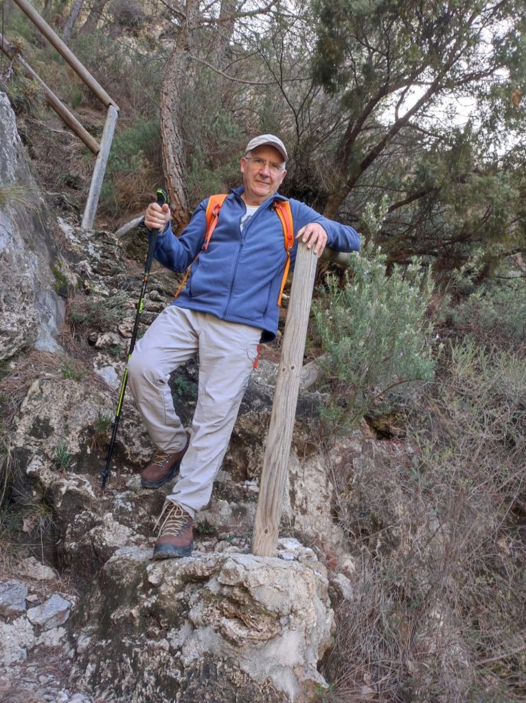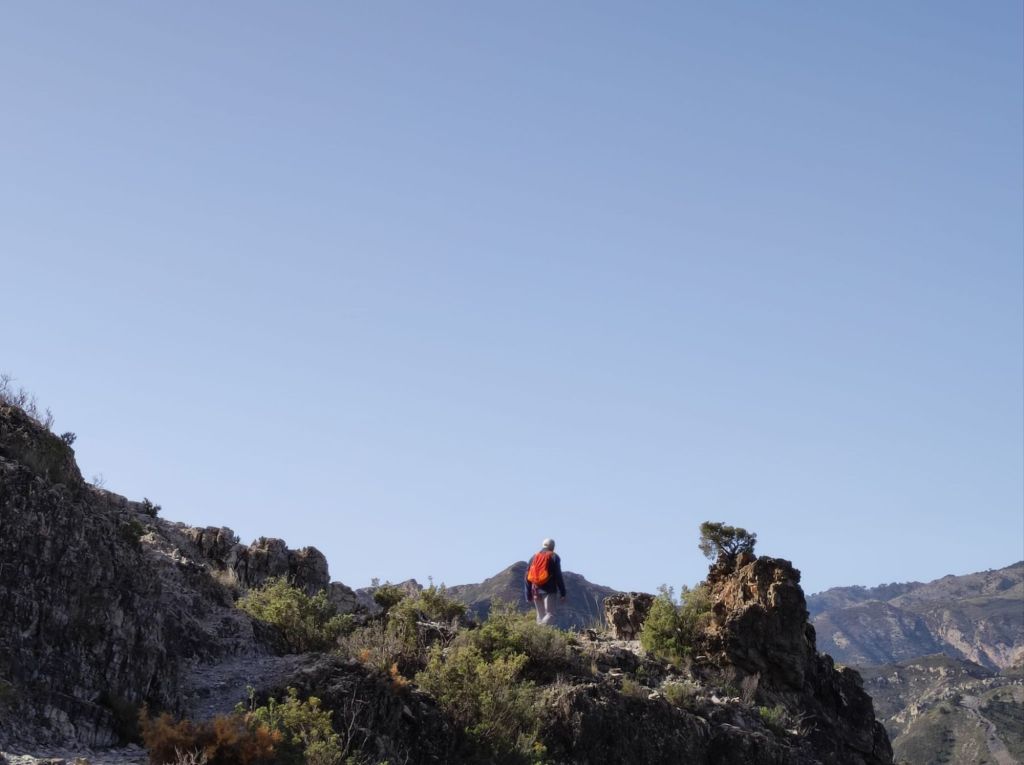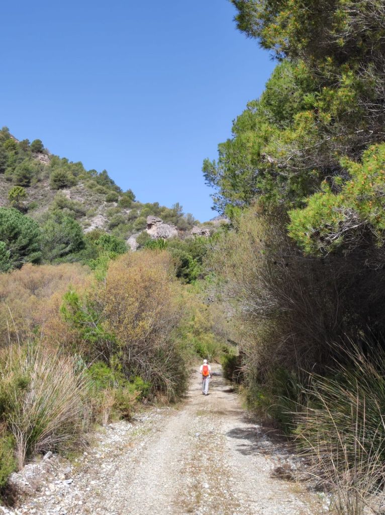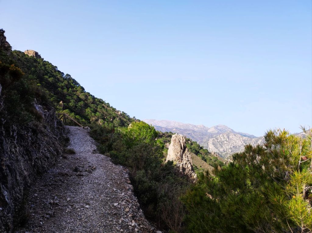 Justo enfrente del lugar de aparcamiento, comienza el sendero señalizado en ligera subida. Para facilitar el acceso se han practicado unos escalones en la piedra. Nada más comenzar el sendero es una maravilla ya que vamos a tener unas magníficas vistas de las cumbres del parque Natural. Desde el Pico Lopera (1.485 m) en la provincia de Granada hasta Navachica (1.831 m) en el límite con Málaga, el espectáculo es impresionante. Es un camino muy estrecho que va descendiendo progresivamente hacia el Barranco de Chortales y en su tramo final encontraremos nuevas escaleras de piedra, barandillas y cuerdas que facilitan el descenso.