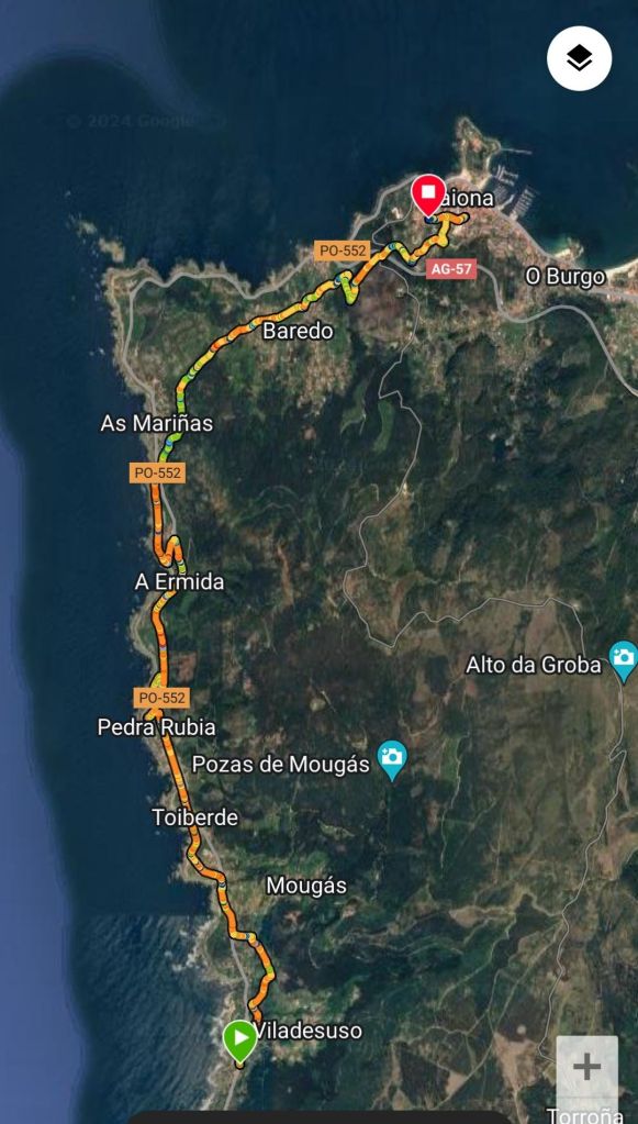 Nuestra octava etapa de este camino comienza en la parroquia de Viladesuso en el Concello de Oia. Sobre el papel era una etapa bastante llevadera, pero si a eso le quitamos los tres km que adelantamos ayer, se nos ha quedado un paseo bastante cómodo.