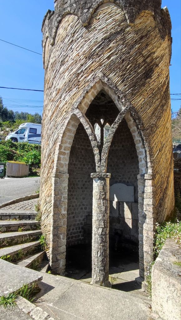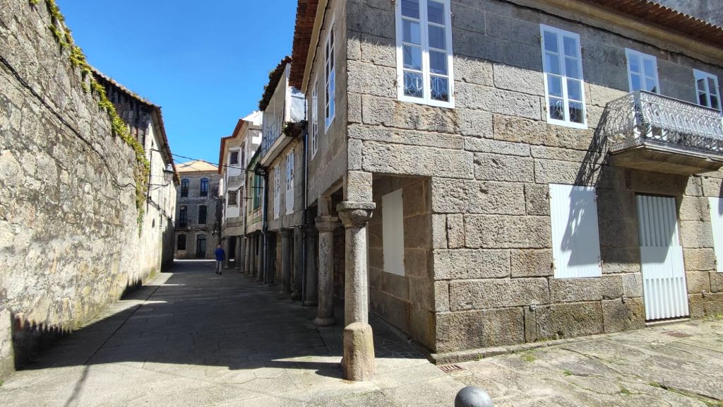 Al poco giramos a la derecha hasta alcanzar el Caminho do Río Pequeno continuamos por el asfalto y ya tenemos unas buenas vistas sobre las Islas Cíes a la entrada de la ría de Vigo. Una curva pronunciada a la izquierda y seguimos por el monte, hasta alcanzar un área recreativa donde realizamos una breve parada para disfrutar de las vistas y tomar algo de fruta. Cruzamos la AG-57 por un alto viaducto que nos conduce a un par de áreas de descanso y al barrio de Percibilleira, desde donde ya se divisan Baiona y su fortaleza. En el descenso de este segundo alto encontramos una bonita fuente “gótica” y un pozo muy bucólico. El resto del descenso lo hacemos ya por el casco urbano de Baiona. Pasamos al lado del campo de fútbol y del cementerio hasta llegar a una bonita plaza en la que están la iglesia de Santa Liberata y la ex colegiata de Santa María. Cerramos la ruta en este punto ya que nuestro alojamiento hoy está a unos cientos de metros.