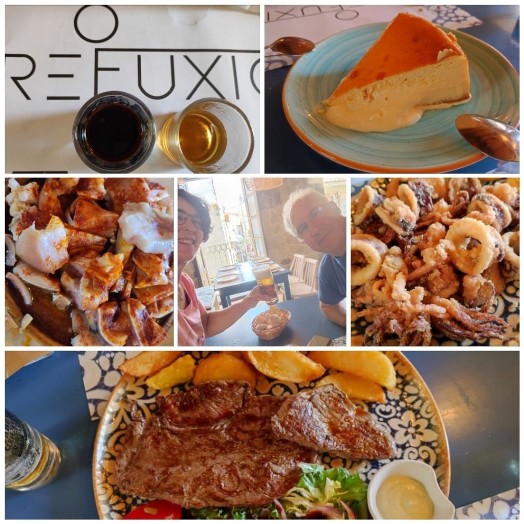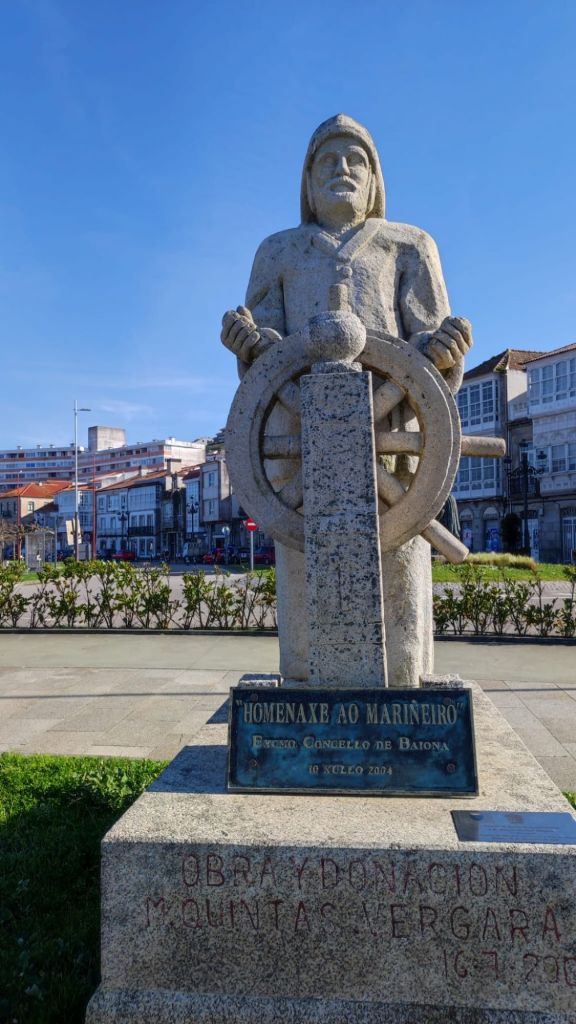 Como hemos llegado pronto a Baiona, después de la comida hemos hecho una interesante visita turística. Nos hemos acercado al puerto, donde se encuentra una réplica de la carabela la Pinta, varios monumentos a la “arribada” de Martín A. Pinzón con la noticia del “descubrimiento” de América, algunos homenajes a los marineros de Baiona que estuvieron en la primera circunnavegación con Magallanes y Elcano, y un Paseo por el Monte Boi o Monterreal en el extremo sur de la ría de Baiona. Se trata de un recinto amurallado que actualmente acoge el Parador Nacional y que, en el pasado, protegió la Ría de Baiona de los ataques de ingleses y portugueses.