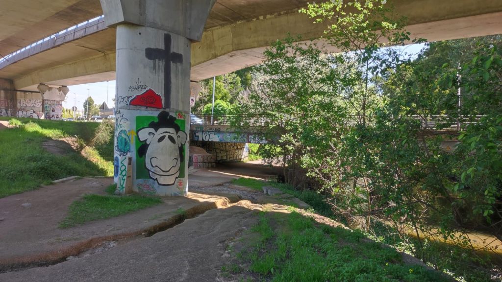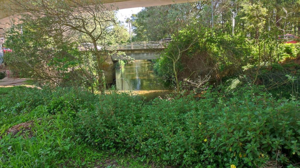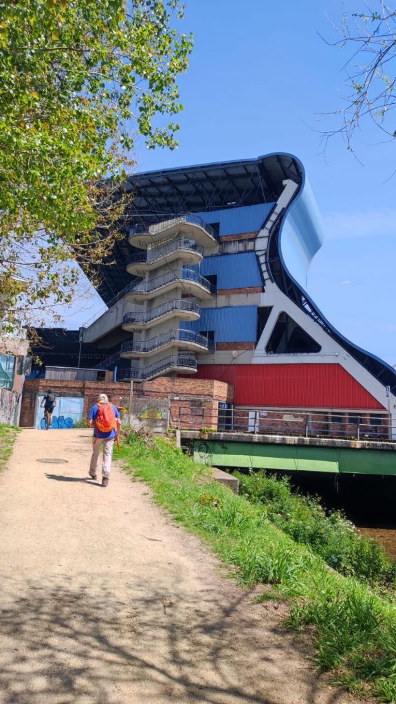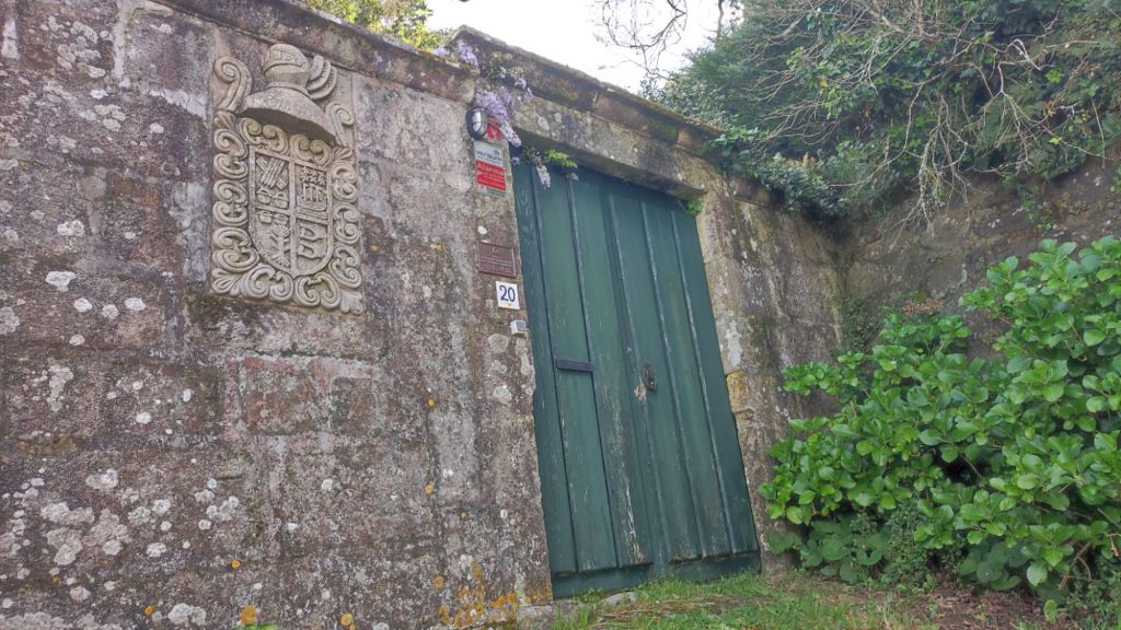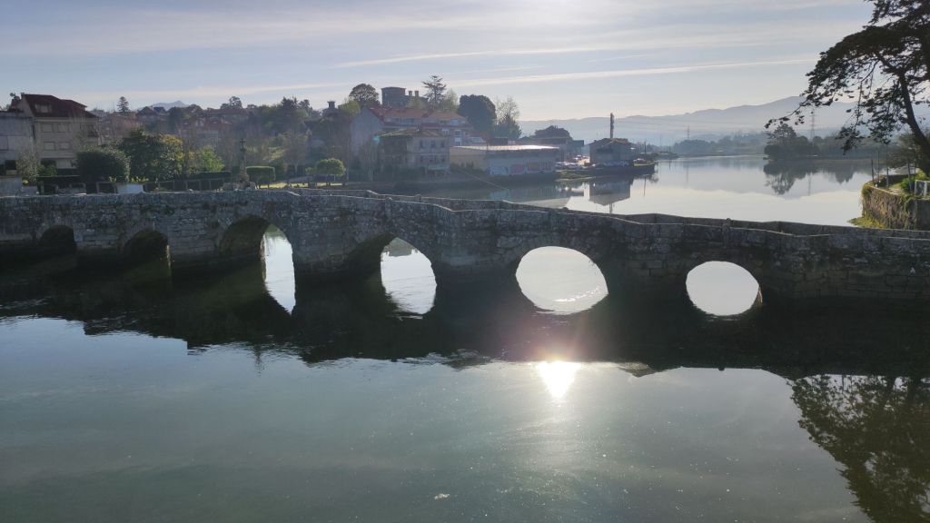 Entramos en el Concello de Nigrán por un paseo fluvial, el camino do Souto y continuamos por el camino de Rosiña hasta alcanzar el núcleo de Nigrán. Por el camino pasamos junto a los pazos de Urzaiz y Cea ya en subida por el monte Sanromán hasta llegar a la parroquia de Priegue, aún en el Concello de Nigrán. Aquí encontramos a nuestros amigos coreanos de ayer junto a un grupo de compatriotas y nos agrupamos junto al banco de Paco, un banco jacobeo muy instagramable con sello e indicaciones de distancias a diversos lugares. La carretera comarcal PO-550 nos acompaña en esta parte del camino. En ella nos encontramos con Mintxo, técnico de sonido de Rosendo durante veinte años y con el que departimos unos minutos.