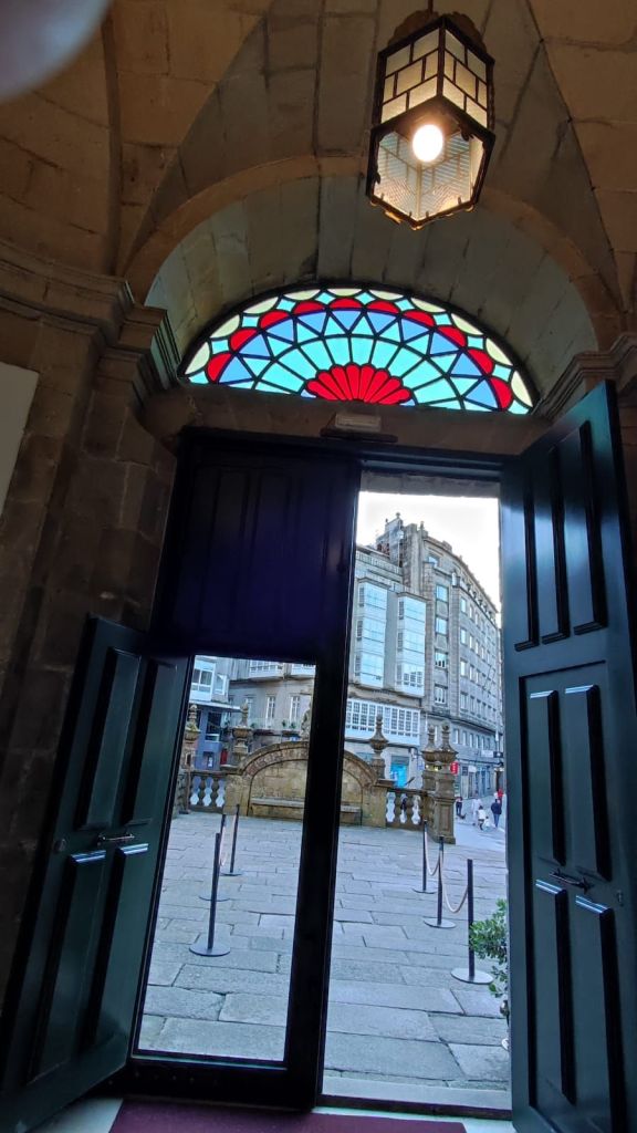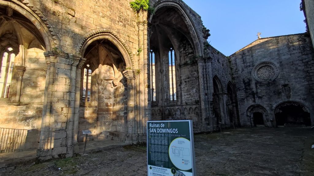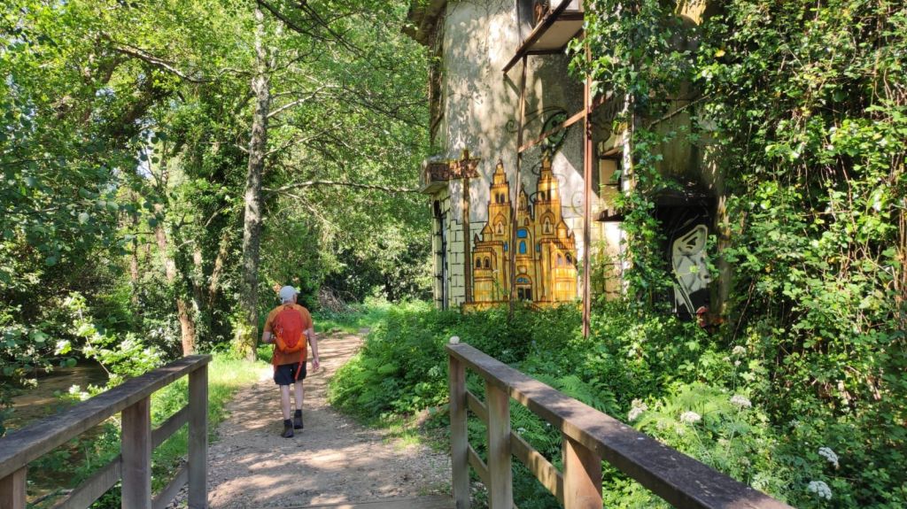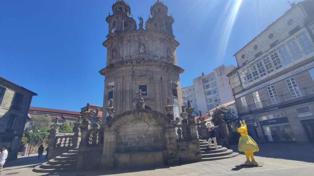 Es una maravilla caminar por ella siguiendo los meandros de río, unas veces tranquilo otras con mucha fuerza y vamos pasando puentes de madera, de cemento entre una gran variedad de vegetación de ribera: sauces, abedules, chopos algún roble… Casi al final de la senda y bajo un puente de la autovía nos encontramos con una buena muestra de arte urbano. Por la Rúa Otero Pedrayo y la Glorieta de Compostela nos dirigimos al centro histórico de la ciudad pasando por la fuente de los niños, el Santuario de la Virxe Peregrina, Rúa Soportales y el simpático loro Ravachol. El casco histórico de la ciudad nos espera.