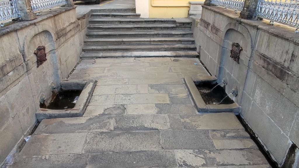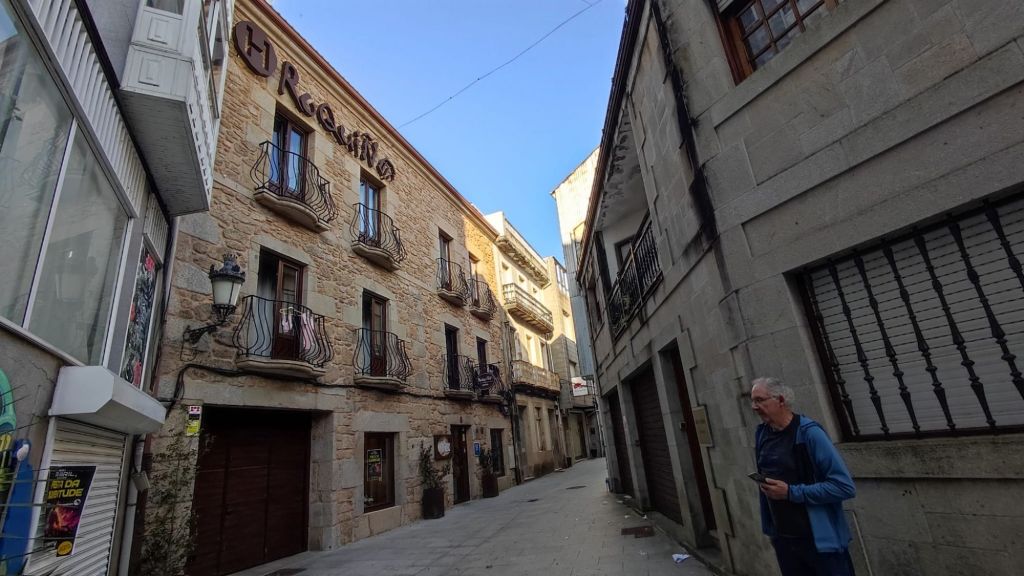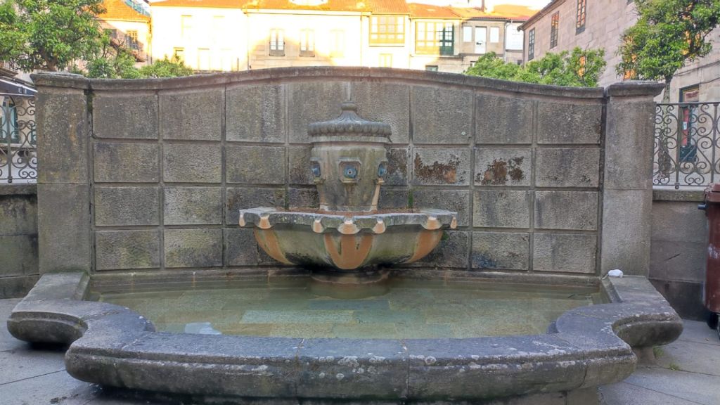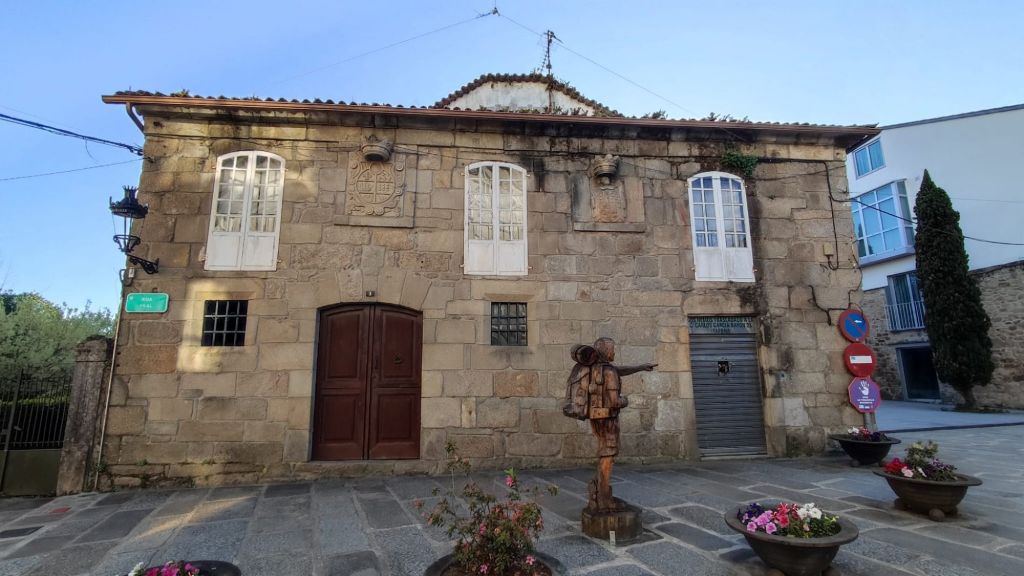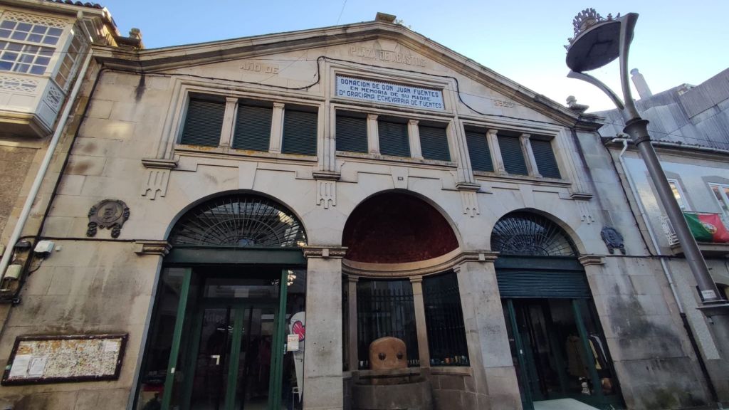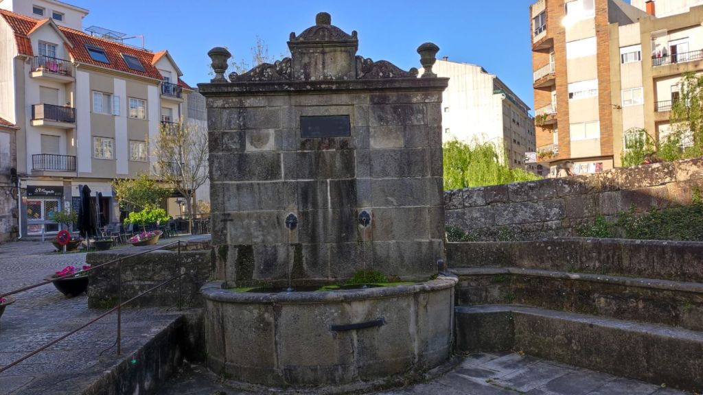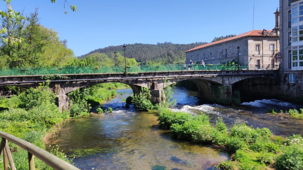 Como viene siendo habitual, por la tarde hacemos un paseo monumental por la ciudad. Nos acercamos al río Umia y lo cruzamos por el mismo puente que cruzó Almanzor, recorremos parcialmente el parque da Tafona, descubrimos la Fuente da Burga que suministraba agua caliente al lavadero del mismo nombre, el colorido Balneario Dávila. Ya estamos en la almendra central de la villa, junto a la plaza en la que Doña Urraca construyó su Torre y en su lugar y con sus restos se construyó la actual Iglesia de Santo Tomé quizás como recuerdo de paso de Santo Tomás de Canterbury por la villa en 1170. La prosperidad de la villa llevó a los “indianos” a construirse hermosas casas en la Calle Real y alrededores. Visitamos el Mercado de Abastos, donación de Juan Fuentes Echevarría en 1929, una hermosa casa en Rúa dos Fornos, ahora hotel, la Fonte de Bermaña, el puente sobre el río Bermaña y el Balneario Acuña.