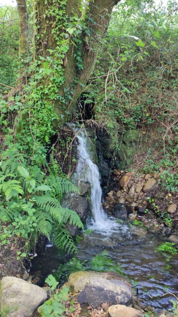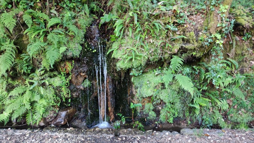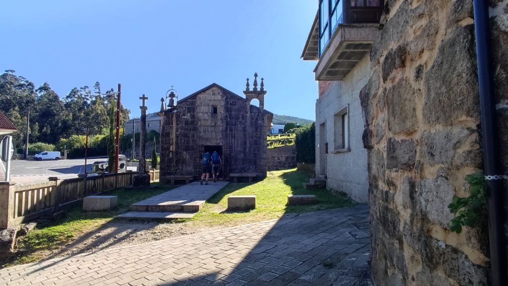 A partir de este punto comienza la subida hacia San Caetano De Alba. Pasada la capilla de San Caetano nos adentramos en los bosques de Reiris y Lombo de Maceira. Un auténtico vergel e una de las “corredoiras” más verdes y húmedas de Galicia, con numerosos arroyos que cruzan el camino y bajo frondosos robles. En plena subida nos adentramos en el Concello de Barro a través de un pequeño puente de piedra que cruza el Rego do Cárcere. Desde la parroquia de San Mauro continuamos hacia San Mamede de Portela. Después de más de tres kilómetros de subida llegamos a la aldea de San Amaro, el punto más alto de la etapa de hoy. Allí hay un bonito albergue con bar y junto al albergue la Capilla de San Amaro que presenta la particularidad que tiene una coqueta espadaña y la campana está al lado opuesto. Tal vez cuando la encargaron no midieron el hueco y no cabía. A continuación pasamos por un lavadero y un área de descanso con fuentes y bancos para los que no se animen a hacer uso del bar del albergue.