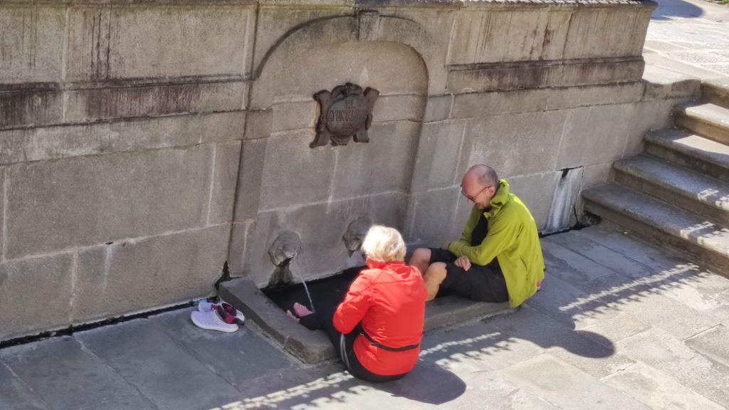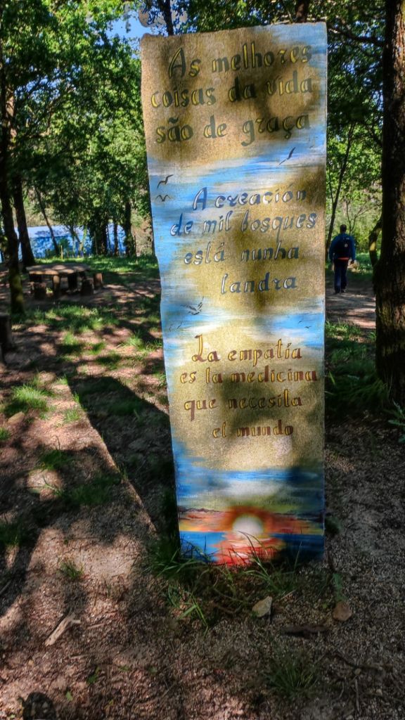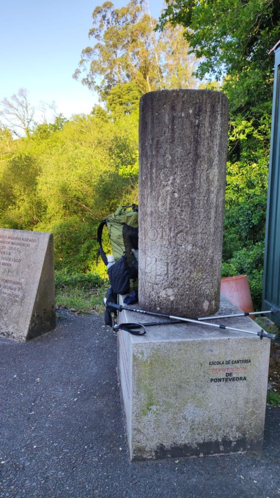 En resumen, ha sido una etapa marcada ya por el altísimo número de viandantes que nos hemos cruzado a lo largo del día, con la longitud apropiada 22,46 km y una única subida con no excesivo desnivel. En muchos tramos han colocado réplicas de los miliarios romanos de la Vía XIX y paneles explicativos, por lo que la caminata se hace bastante amena. Cuando no es coincidente con la vía romana nos entretenemos con la profusión de capillas, cruceiros, alminhas, áreas recreativas fuentes y lavaderos.