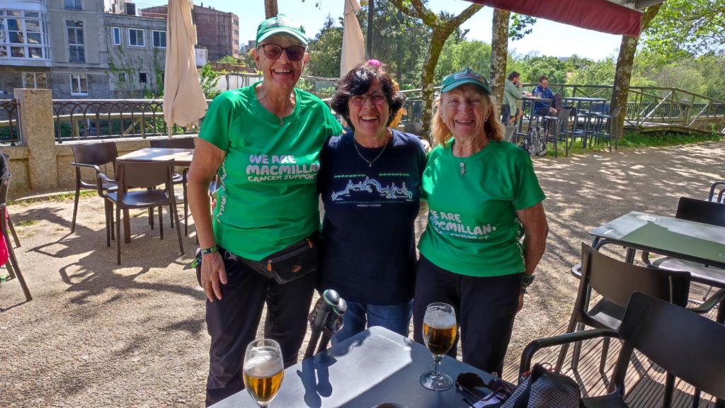 Cuando estamos terminando de comer llegan la escocesa Rena Wiggins y su amiga (es la señora que cumplía 80 años ayer) y que se encuentra haciendo el camino en apoyo al Team Mckeown para recaudar fondos para la lucha contra el cáncer. Todo un ejemplo de superación y resiliencia.