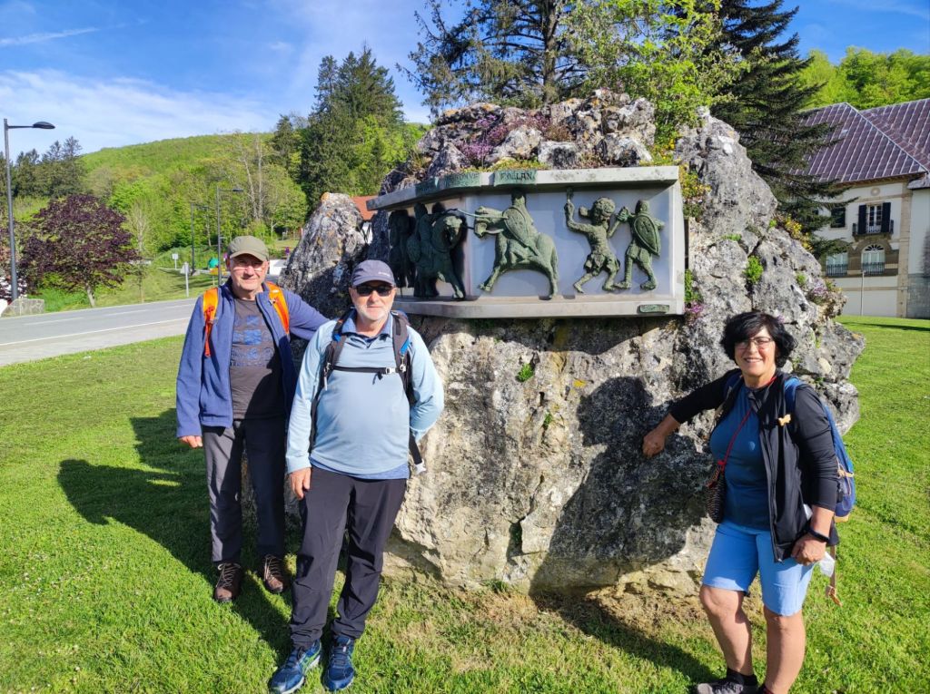 Iniciamos la caminata en Roncesvalles, ante el Silo de Carlomagno (capilla del Espíritu Santo) , que se supone mandado construir por el propio emperador para enterramiento de los francos muertos en la batalla de Roncesvalles. A su lado se encuentra la Iglesia de Santiago de trazas góticas del siglo XIII. Cruzamos la carretera nacional y comenzamos la ruta junto al rótulo que marca 790 km para Santiago. El sendero es muy bonito, jalonado de hayas de gran porte y con varios cruceros, como el de Roldán. La primera localidad que cruzamos es Burguete, con hermosas casas, reconstrucciones de otras de los siglos XVIII y XIX, un panel informativo de la ruta de Ernest Hemingway que recoge las andanzas del escritor en la villa y la Iglesia de San Nicolás de Bari. A la salida de Burguete cruzamos el arroyo Xorinaga por un puente de madera y entramos en una zona de pastos en la que encontraremos algunas cancelas que tendremos que dejar tal y como las encontramos a nuestro paso.