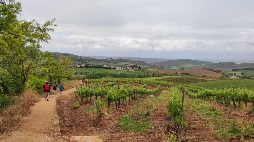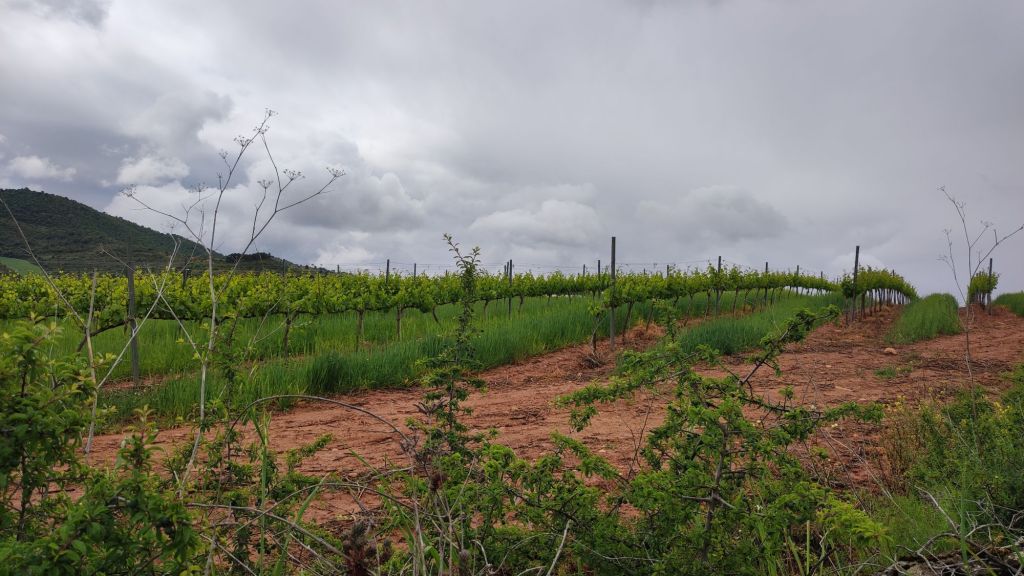 Y es que en esta zona no faltan las grandes superficies dedicadas al viñedo aunque no faltan las zonas de cereal que contrastan con la silueta de algunas redondeadas montañas y algunos pequeños bosques de coníferas. Desde Villamayor de Monjardín hasta Los Arcos (unos 12 km) no hay ninguna población y el único servicio disponible es una food truck a mitad de camino, aunque hay algunas fuentes no siempre con agua.