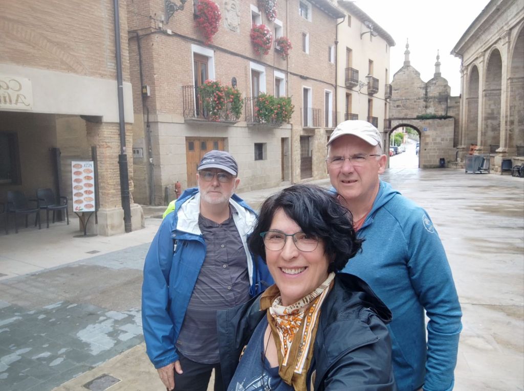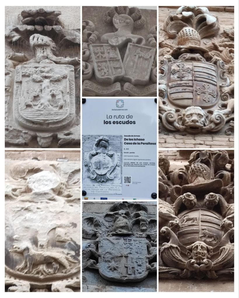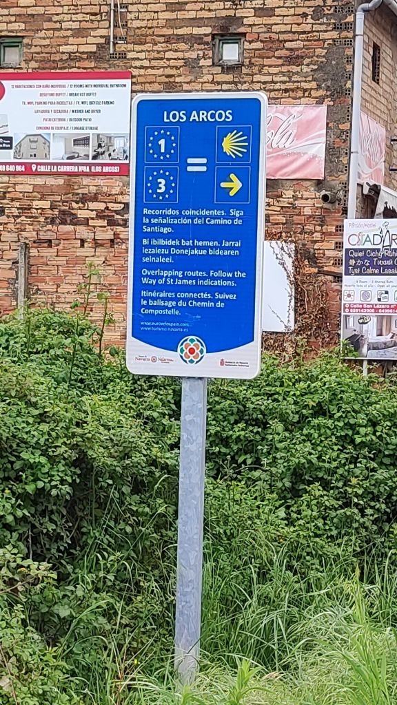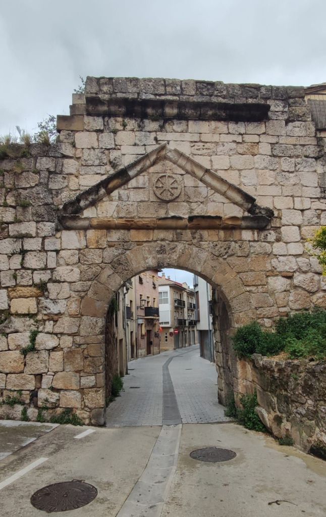 Finalmente, en medio de otro chaparrón, nos adentramos en el casco urbano de Los Arcos, surgida a finales del siglo XI como repoblación de antiguas minas romanas. Fue una ciudad amurallada como atestiguan diferentes puertas como la del Estanco o el Portal de Castilla. También destacan las casas blasonadas repartidas a lo largo de la Calle Mayor y varios tramos de soportales a lo largo de la plaza. Cuando llegamos a la puerta de nuestro alojamiento detenemos la ruta para mañana retomar el recorrido.
