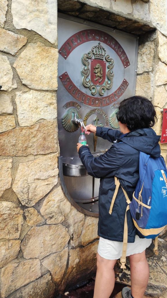 Salimos de la plaza de San Martín pasando junto a las escalinatas de la Iglesia de San Pedro, enfilamos por la Calle San Nicolás en dirección a la Puerta de Castilla de origen medieval y que formaba parte de las defensas de la ciudad. Callejeamos por una amplia avenida, pasamos junto a la Iglesia de San Pedro de la Rúa (Capuchinos) y, sin solución de continuidad, entramos en la localidad de Ayegui, pasamos junto a la Iglesia de San Martín y, a la salida, un indicador nos invita a girar a la izquierda para subir una pequeña cuesta que pasa junto a una herrería y nos deja en la famosa fuente del vino, reclamo publicitario de las bodegas Irache en la que los bodegueros han puesto un grifo de vino y otro de agua. Junto a las bodegas, el Monasterio de Irache fue uno de los primeros hospitales de peregrinos y sede de la primera Universidad de Navarra. Actualmente el recinto se encuentra completamente cerrado.