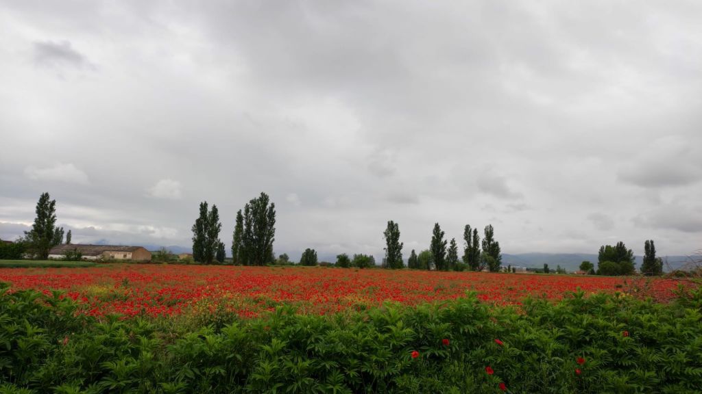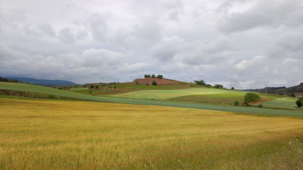 En nuestra novena etapa del Camino De Santiago Francés salimos de Nájera para llegar a Santo Domingo de la Calzada. La mañana está muy gris y todos los pronósticos dan agua a partir de las 11 de la mañana. La etapa se presenta sencilla y de escasos desniveles en un territorio con ligeras ondulaciones. La etapa transcurre esencialmente por pistas agrícolas y a mitad de etapa vemos cómo los viñedos dan paso a los cultivos de cereales y colza.
