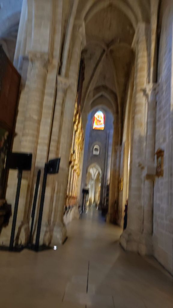 Por la tarde, en medio de un impresionante aguacero, hacemos una visita cultural en la que visitamos la catedral y el museo que vale mucho la pena. En la catedral nos detenemos especialmente en la Capilla de Santa Teresa, la Cripta, con unos mosaicos impresionantes, el sepulcro del Santo, el gallinero que conmemora el milagro de Santo Domingo que salvó a un joven injustamente acusado de robo. En la entrada a la Catedral están incluidas una visita a la torre Exenta, con una colección de relojes y campanas impresionante y una vista al Convento de San Francisco que culminan una jornada plena de emociones.