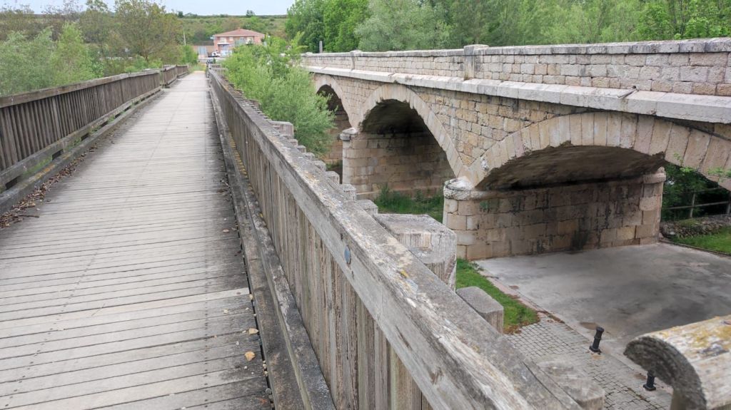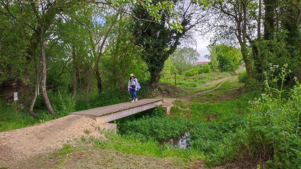 En apenas dos kilómetros entramos en Villambistia en cuya zona alta se encuentra la Iglesia de San Esteban del siglo XVII. A la salida pasamos junto a la Ermita de San Roque, junto a la Fuente del Remojón, de cuatro caños y lavadero y un domo geodésico. Continuamos caminando y enseguida vemos en la distancia la siguiente localidad: Espinosa del Camino, en la que destaca la Iglesia de la Asunción. Salimos del pueblo y en un par de kilómetros pasamos junto a los restos del Monasterio o Cenobio mozárabe de San Felices donde se supone que está el sepulcro del conde Diego Porcelos, fundador de Burgos. Más adelante caminamos por un andadero paralelo a la N-120 y cruzamos el río Oca por un puente de madera. Entramos en Villafranca Montes de Oca.
