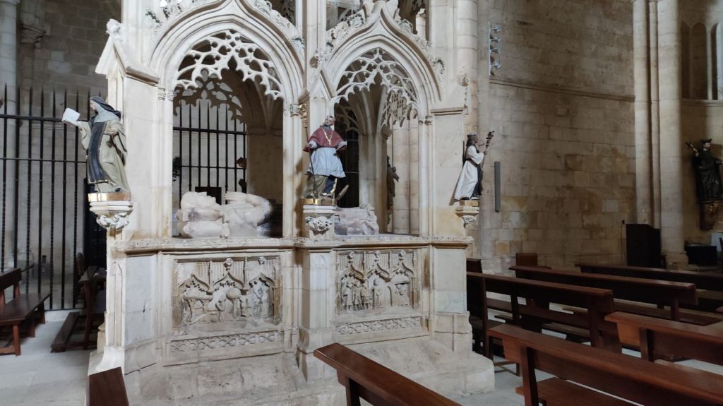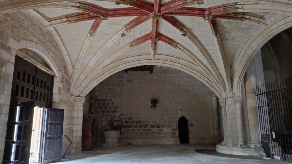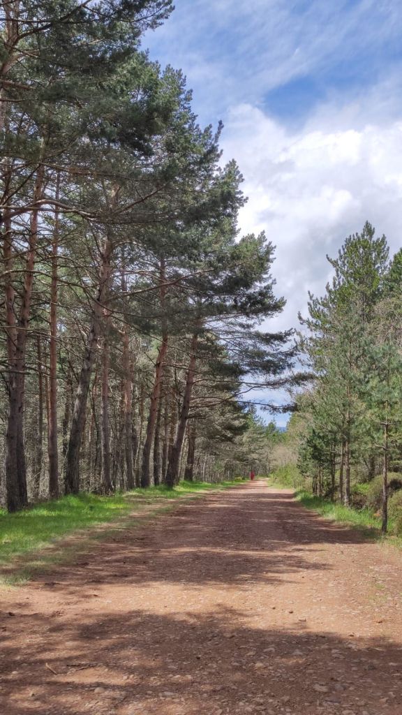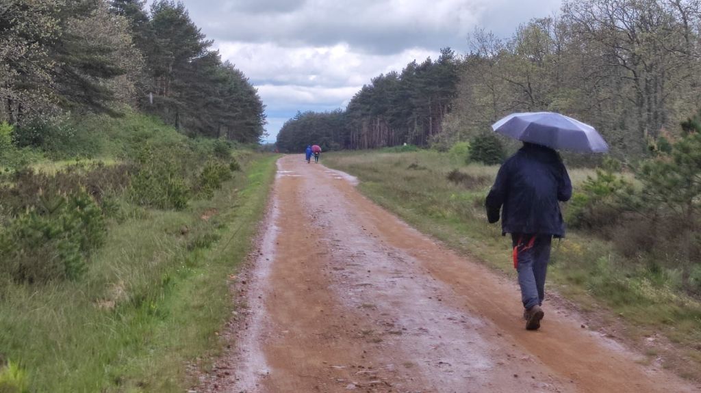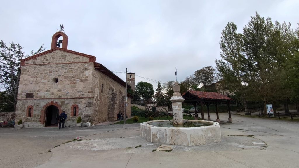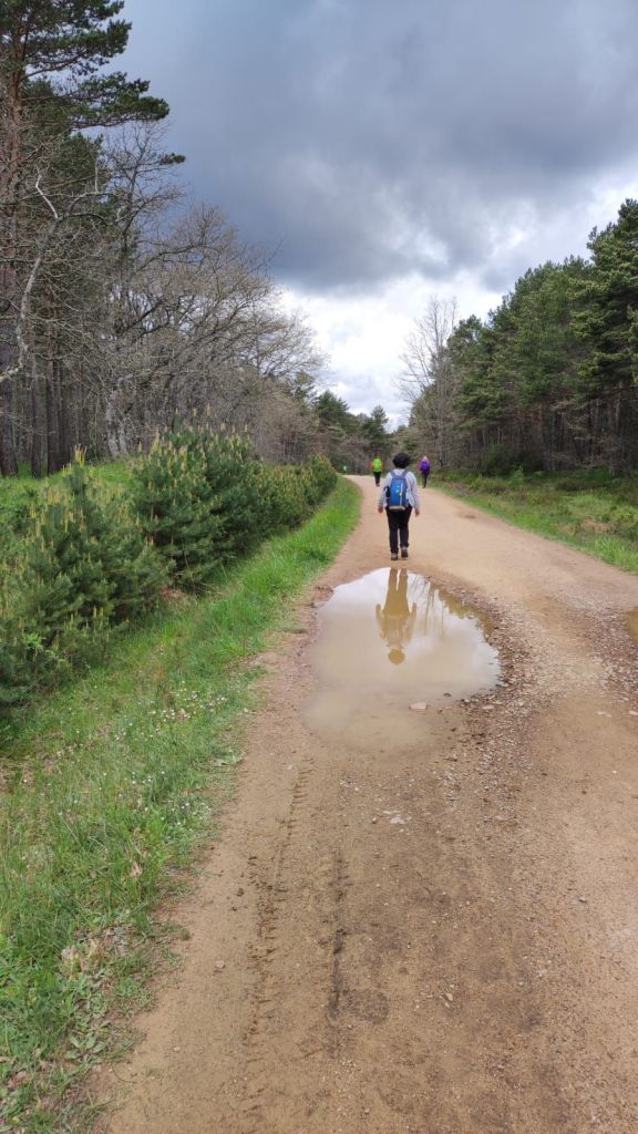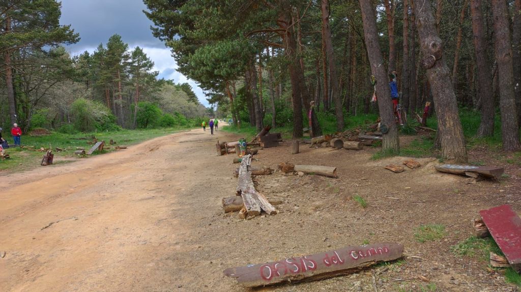 Desde esta localidad hasta San Juan de Ortega, a unos 12 km, no hay servicios, por lo que nos detenemos para descansar un poco y tomar un ligero refrigerio. Reemprendemos la marcha y al pasar por la Iglesia de Santiago Apóstol se inicia una subida sin contemplaciones con un primer kilómetro muy duro que se va moderando progresivamente. Al kilometro y medio desde Villafranca nos encontramos con la Fuente de Mojapan y un área recreativa con mesas y bancos. Vamos adentrándonos en un cerrado bosque de pino carrasco mientras continuamos la subida hasta el Alto de La Pedraja, punto más alto de la etapa a 1.160 metros sobre el nivel del mar. En el Alto hay un monumento en el que se recuerda con unos versos de Miguel Hernández a las más de 300 personas fusiladas en los primeros meses de la guerra civil por los sublevados contra la república. El día ha estado muy muy nublado y al comenzar el descenso comienza a llover. El camino es muy pedregoso pero el entorno es muy agradable, entre un bosque de pinos y robles, y de vez en cuando vamos encontrando algunas flechas del camino diseñadas por algún artista caminante y otros objetos queñ despiertan una sonrisa. El camino pedregoso se torna en amplia pista forestal a unos dos kilómetros de San Juan de Ortega. Visitamos su templo entre románico y gótico admirando sus capiteles, el baldaquino, los retablos y muchos detalles sorprendentes. Son más de las dos de la tarde y nos detenemos para comer algo y afrontar los casi siete kilómetros que nos restan hasta Atapuerca.